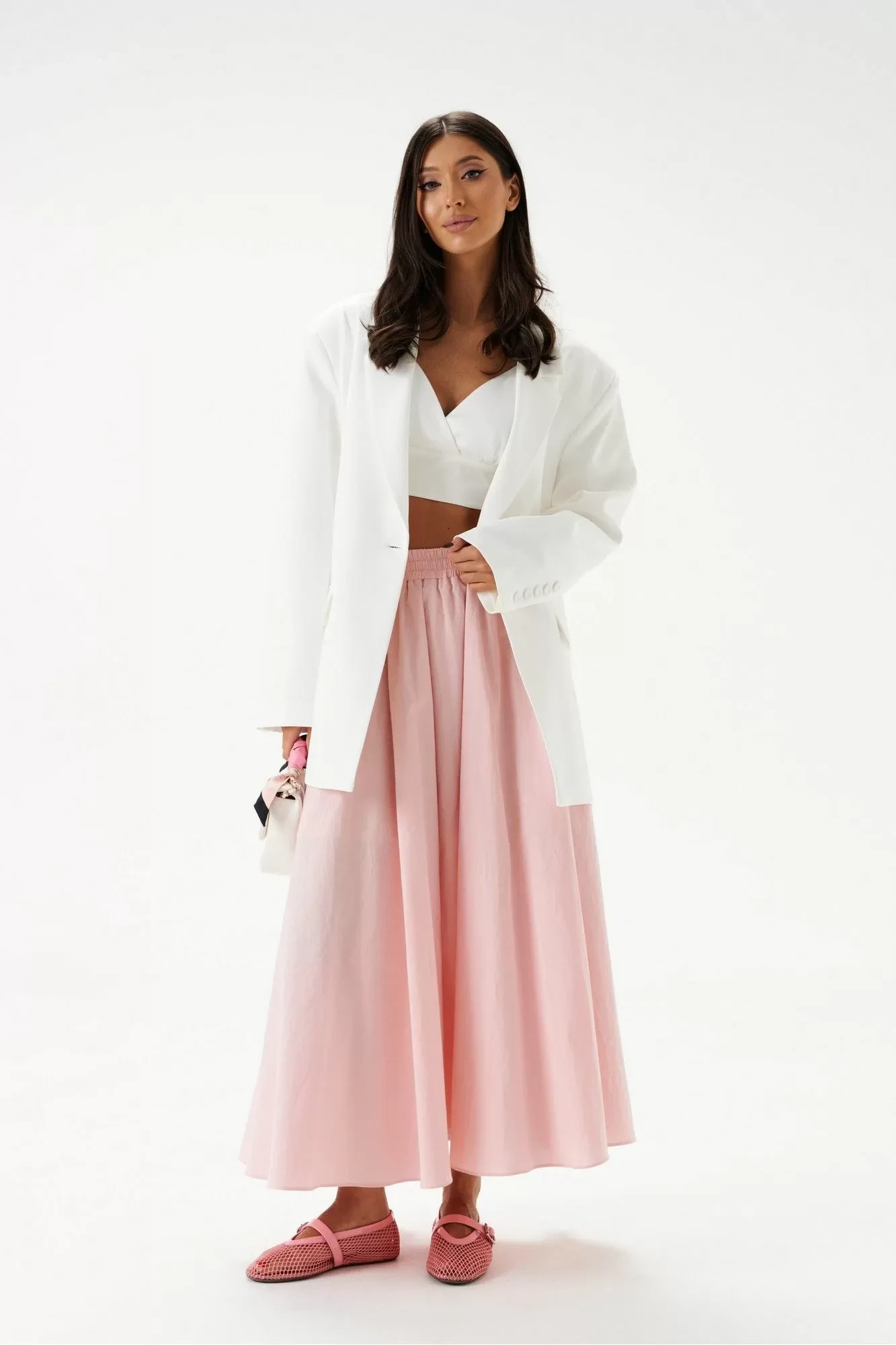Топ на узких бретелях выполнен из белого полотна. Характеристики: укороченный, фигурный вырез горловины, узкие бретели, по спинке резинка со сборкой, по переду под лифом стабильная вставка, застежки в изделии нет.