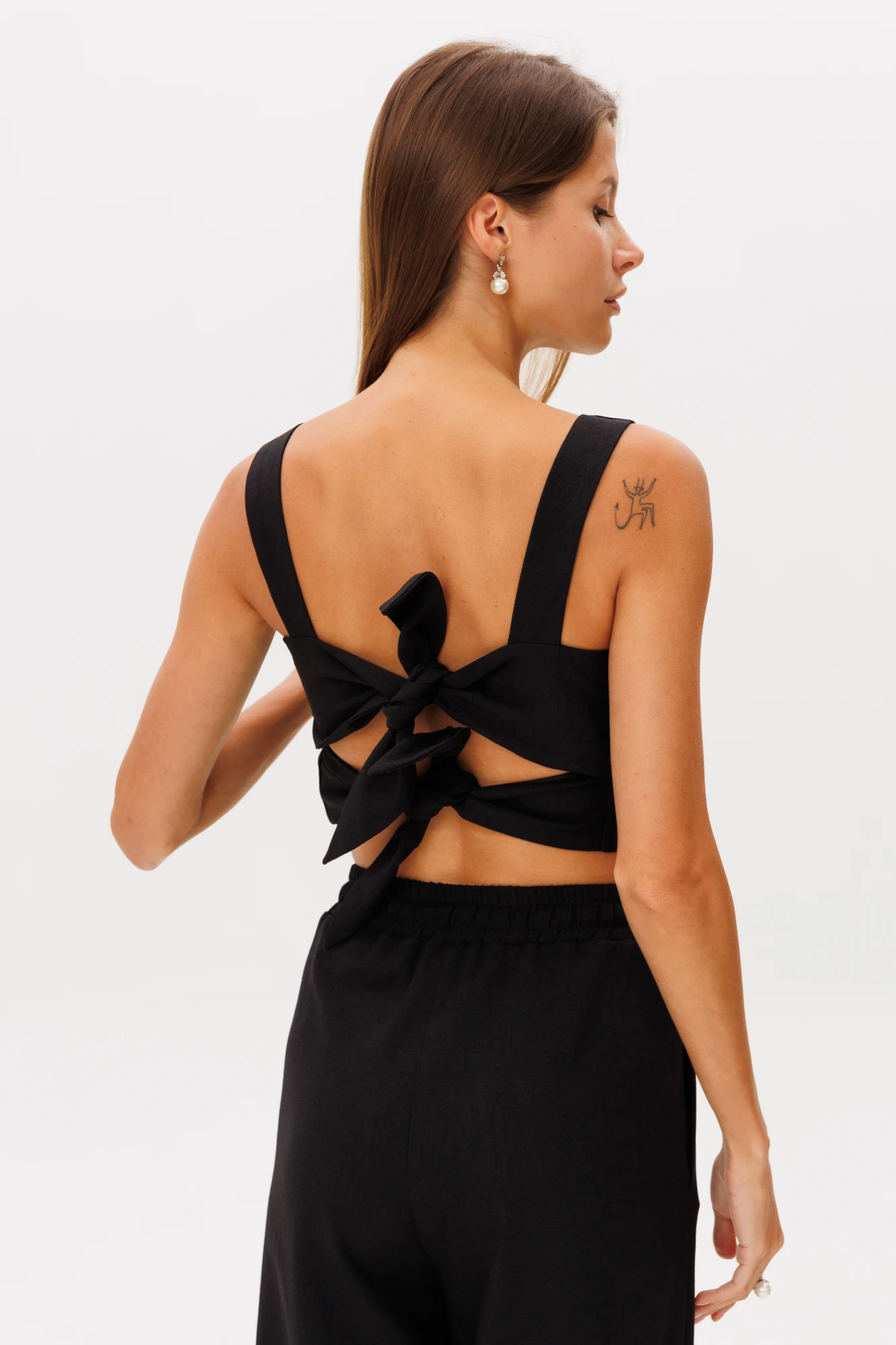Укороченный топ с рельефами по переду , на бретелях, топ на подкладке из хлопка, по спинке фиксируется завязками. Длина изделия от верхней части бретели 37 см. Топ можно носить с брюками, шортам, юбками, вещь - в которой вы не останетесь не замеченной.