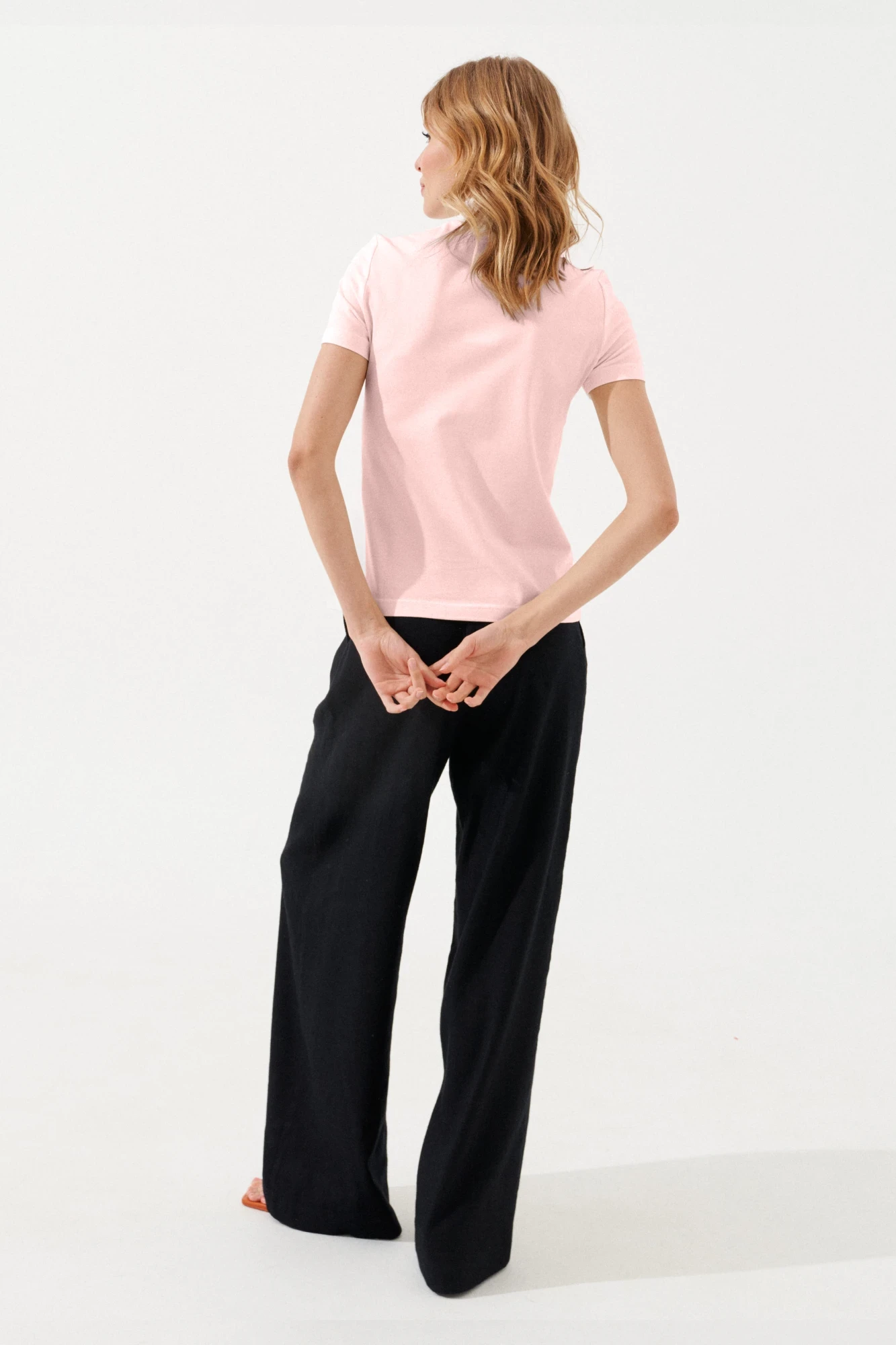 Топ женский, полуприлегающий. Горловина на невысокой стойке. Рукав втачной, короткий. Низ изделия обработан на спецмашине.