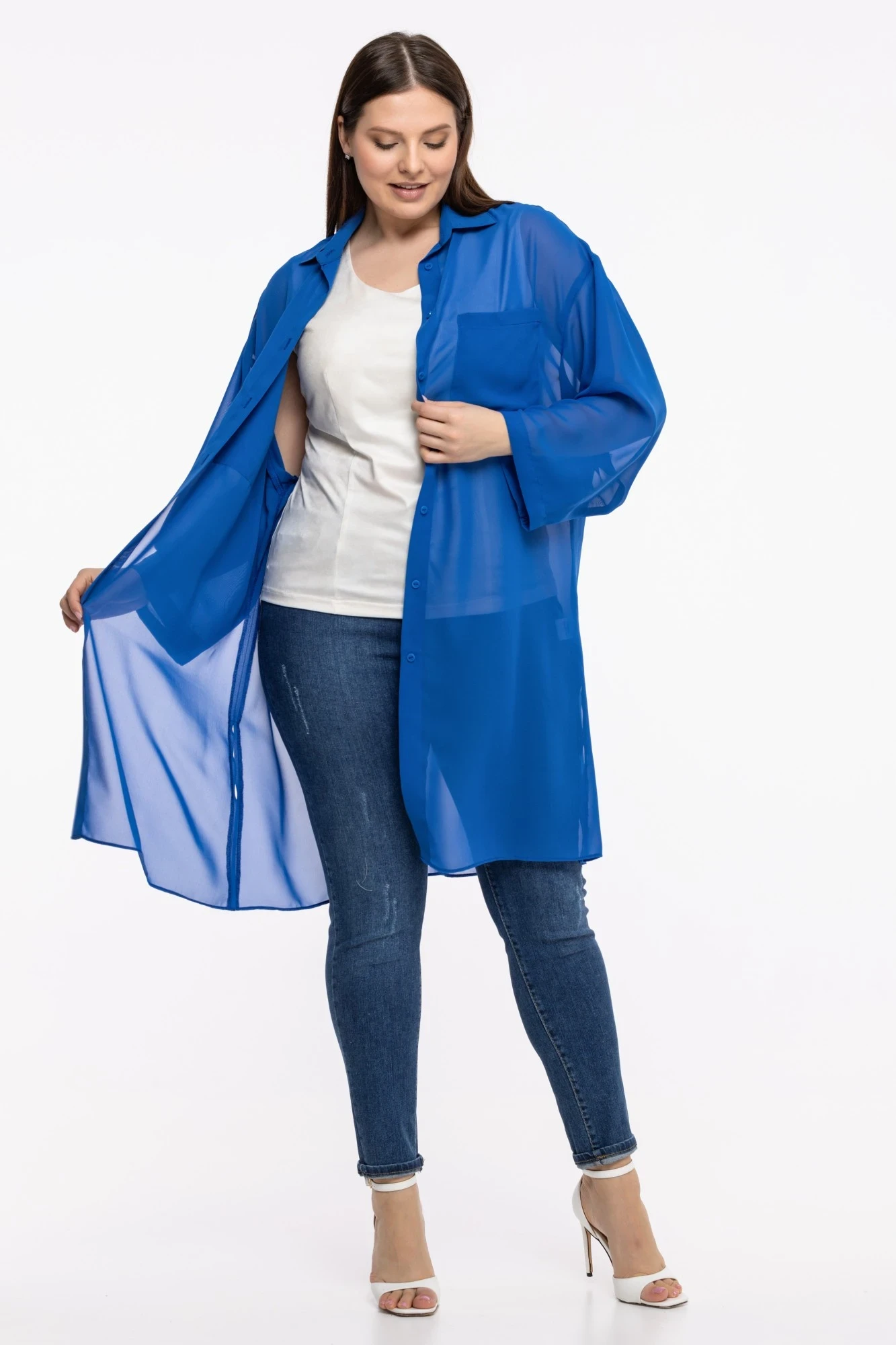 Блузка-рубашка на пуговицах с рукавом 7/8 из шифона - это стильная и женственная модель, которая идеально подойдет для повседневного или офисного образа. Шифон - легкий, прозрачный и нежный материал, который создает воздушный и элегантный вид.