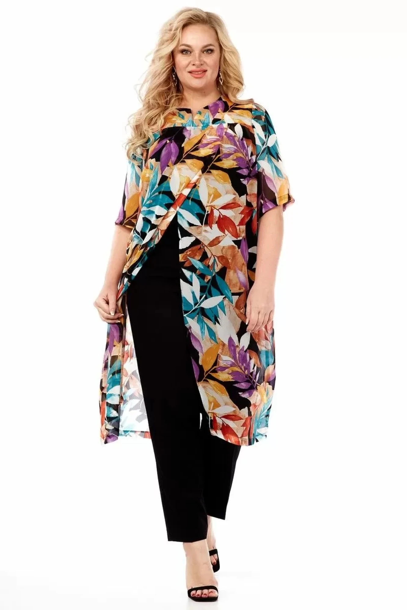 Стильная шифоновая туника от Celentano. По полочке обработана двойная кокетка, центральная часть полочки на запах. Спинка цельная. Рукав одношовный втачной.