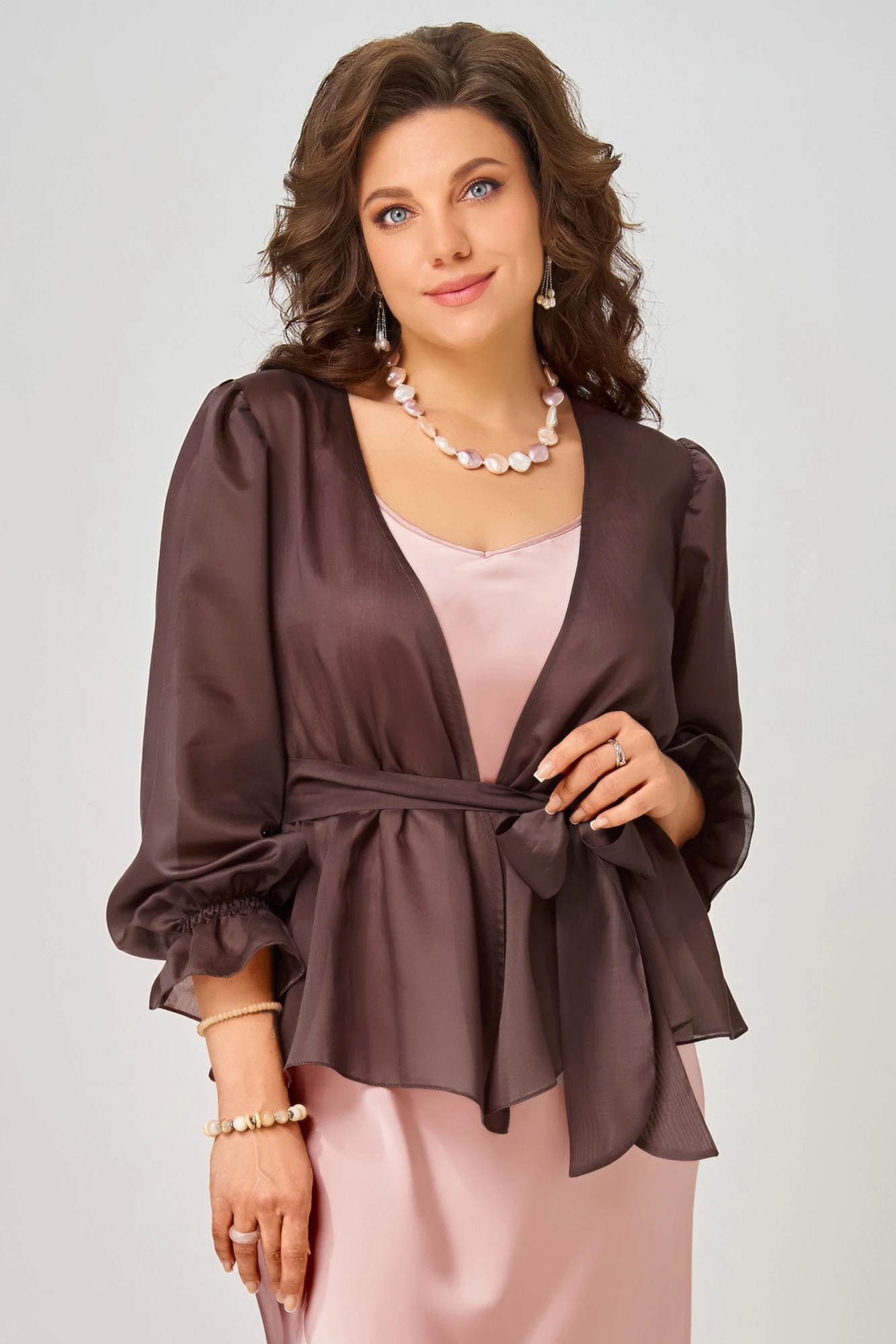 Туника выполнена из текстильной ткани вуаль ""Аурора"". Накидка свободного покроя, без застежки, край борта обработан бейкой, рукава втачные одношовные, низ рукава присобран на венгерку, по окату рукава легкая сборка. Низ изделия и низ рукавов обметан улиткой и застрочен на 0,2 мм.