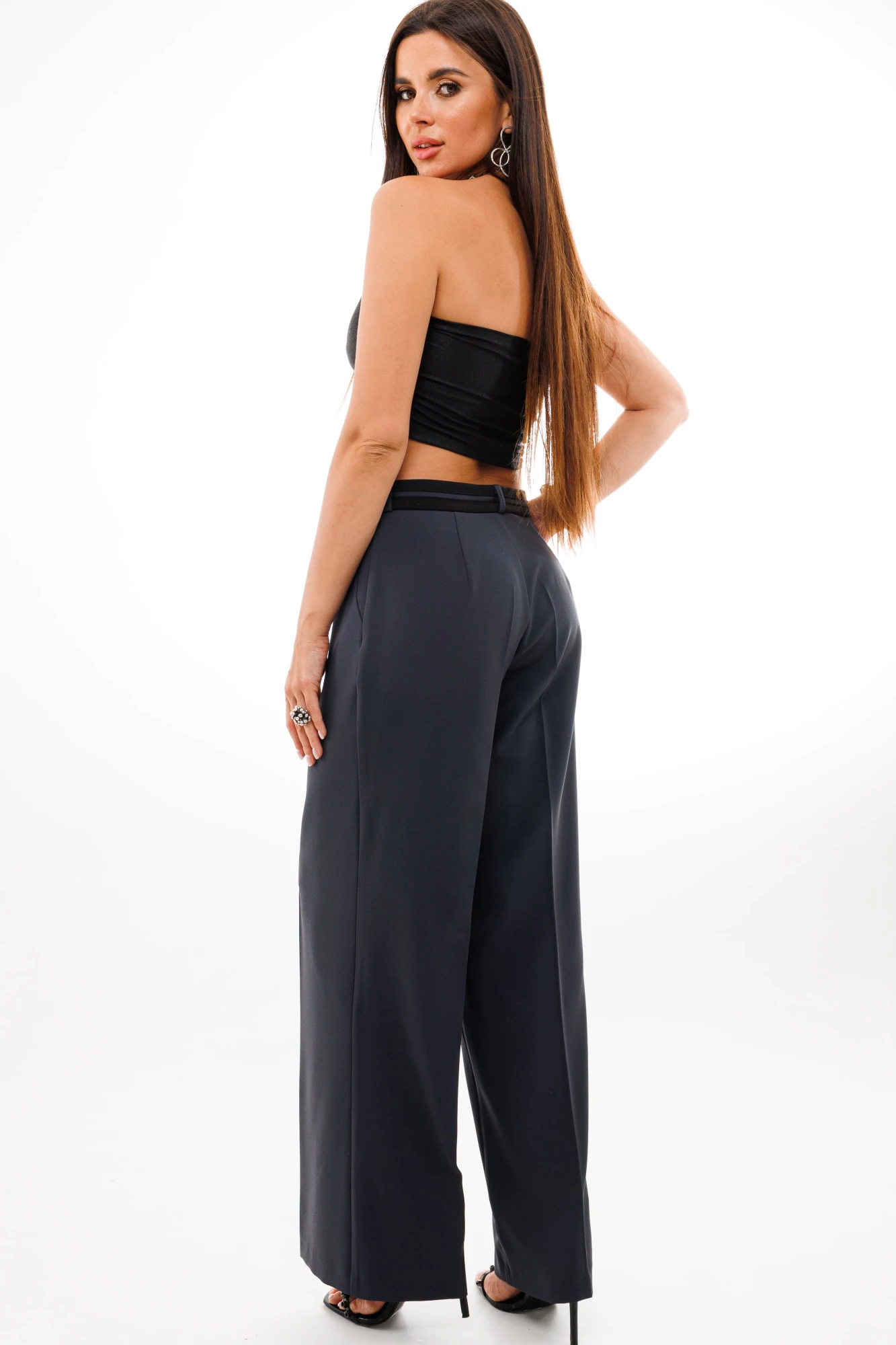 На модели в графитовых брюках топ 767 и рубашка 1393.
