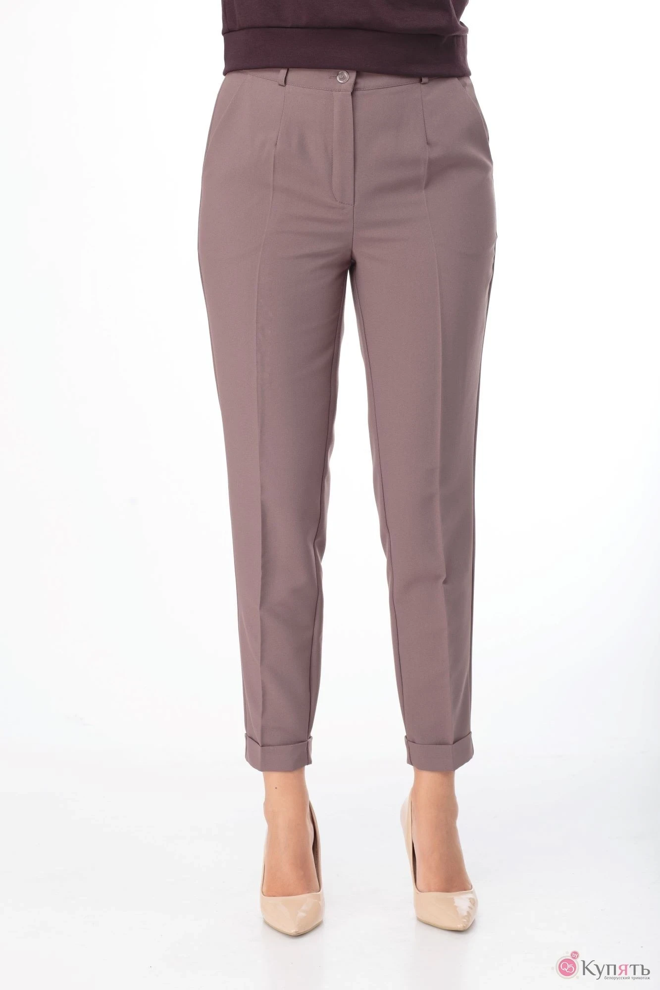 Брюки классического покроя с высокой посадкой, с боковыми карманами, притачным поясом, низ брюк с отворотами.