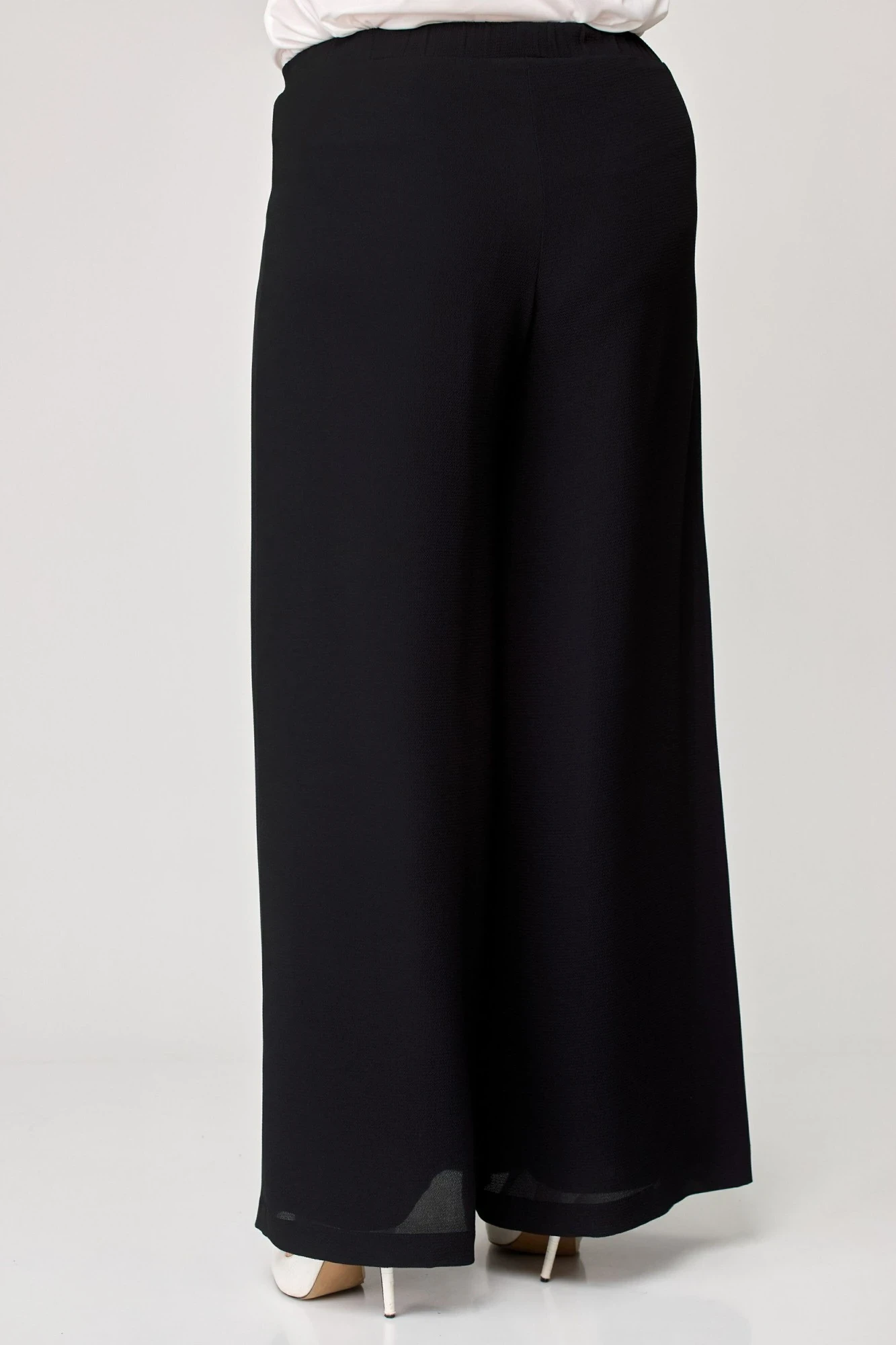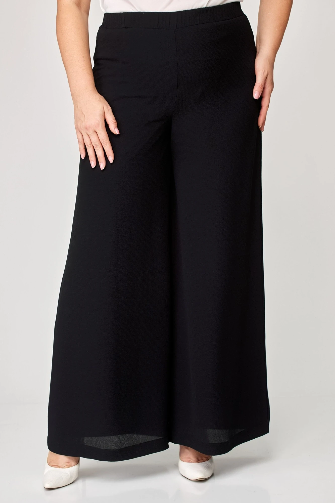 Длинные широкие брюки с поясом на резинке по всей ширине. Отлично подойдут для делового гардероба, а также для вечерних вариантов, в которых можно отправиться в театр или в ресторан. Брюки не будет просвечиваться за счёт подкладки из мягкой ткани.
