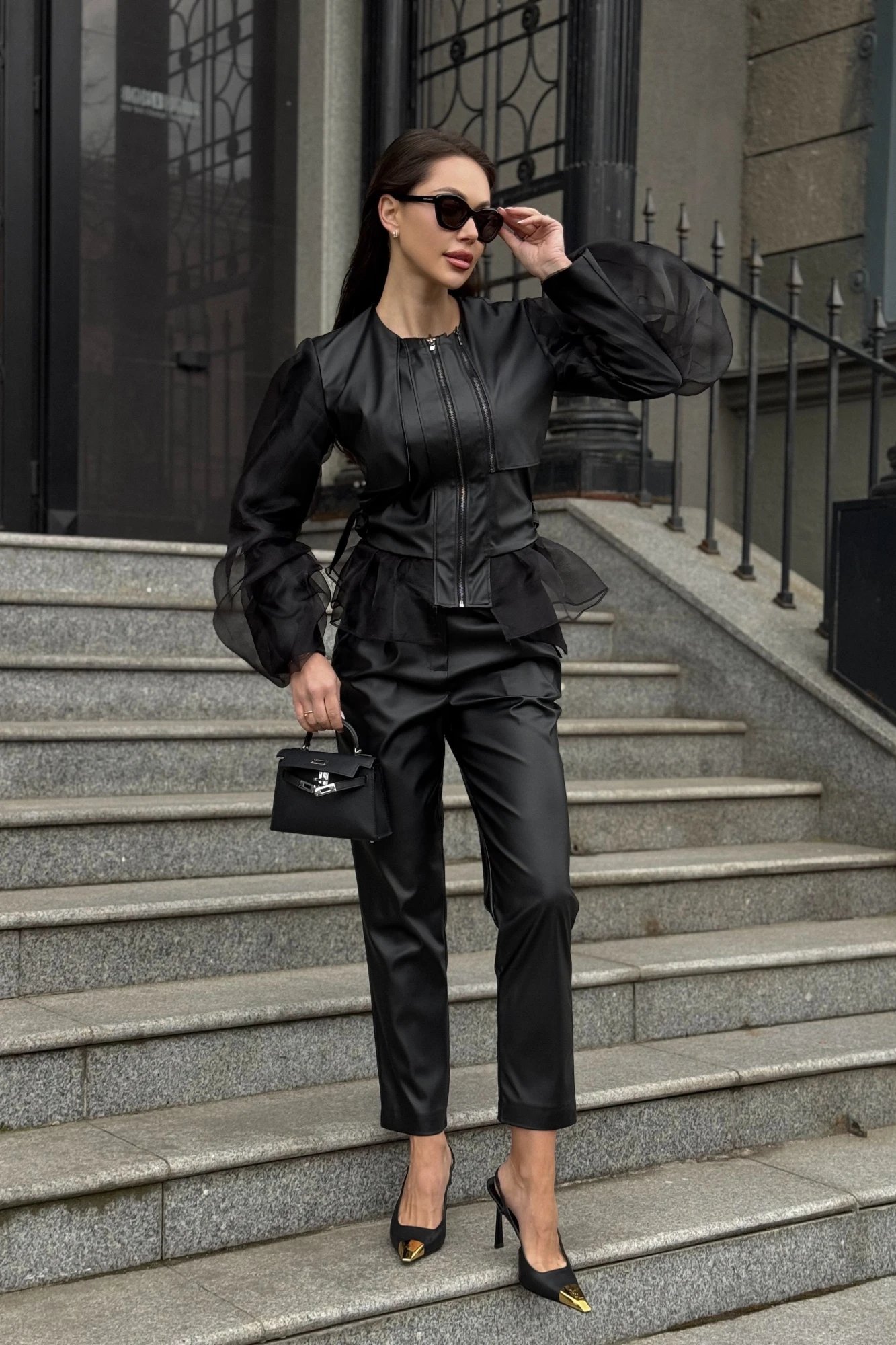 Брюки прямого кроя, длинна 7/8, застёжка- гульфик , по боковым швам обработаны карманы
