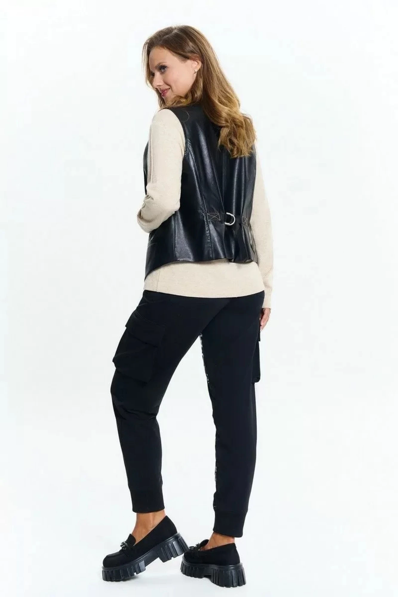Джоггеры - карго из хлопкового футера, с трикотажным поясом на резинке и манжетами по низу. В изделии удобные боковые карманы спереди, накладные сзади и объемные карманы - книжки с клапанами по бокам. Джоггеры декорированы глянцевым принтом.