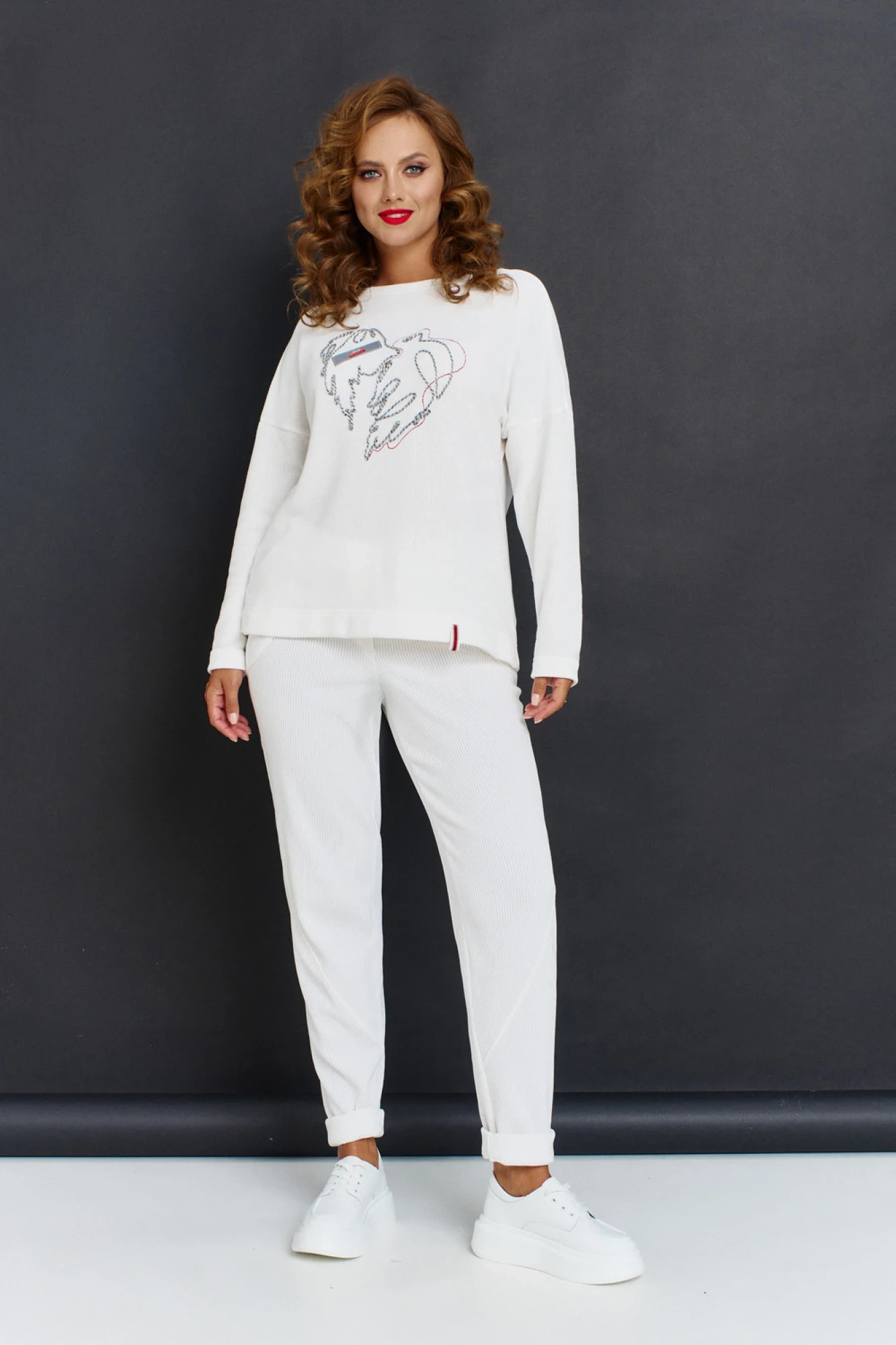 Джоггеры из плотного хлопкового трикотажа с фактурой штрукс, силуэтной формы "бананы", с удобными боковыми карманами и сложным конструктивным решением бокового шва, переходящего на перед. Пояс изделия на резинке.