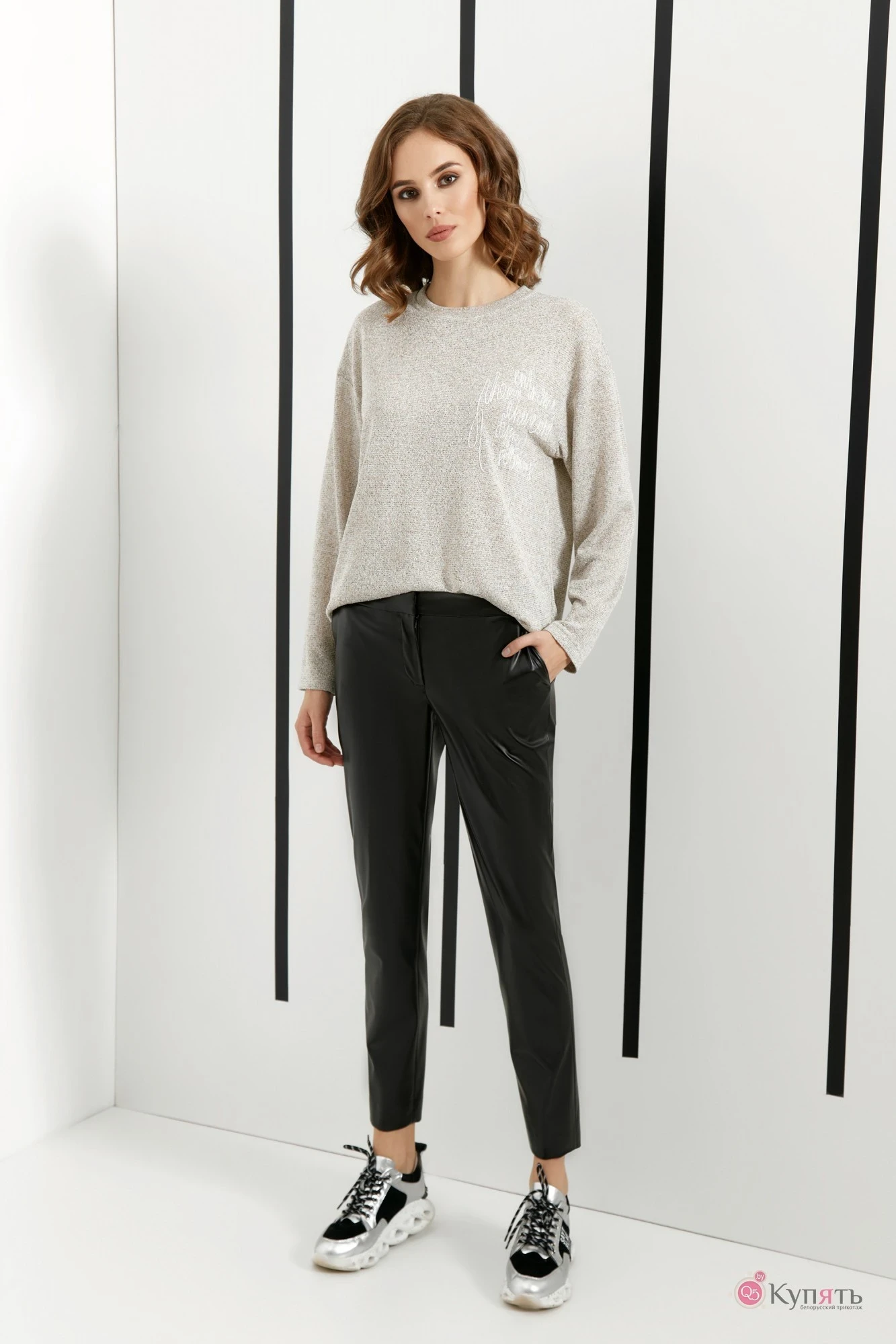 Брюки женские полуприлегающего силуэта. По переду обработаны косые, боковые карманы, в среднем шве – застежка на усиленную тесьму «молния». Спинка с талевыми вытачками. Верхний срез брюк обработан притачными обтачками, застежка – крючки.