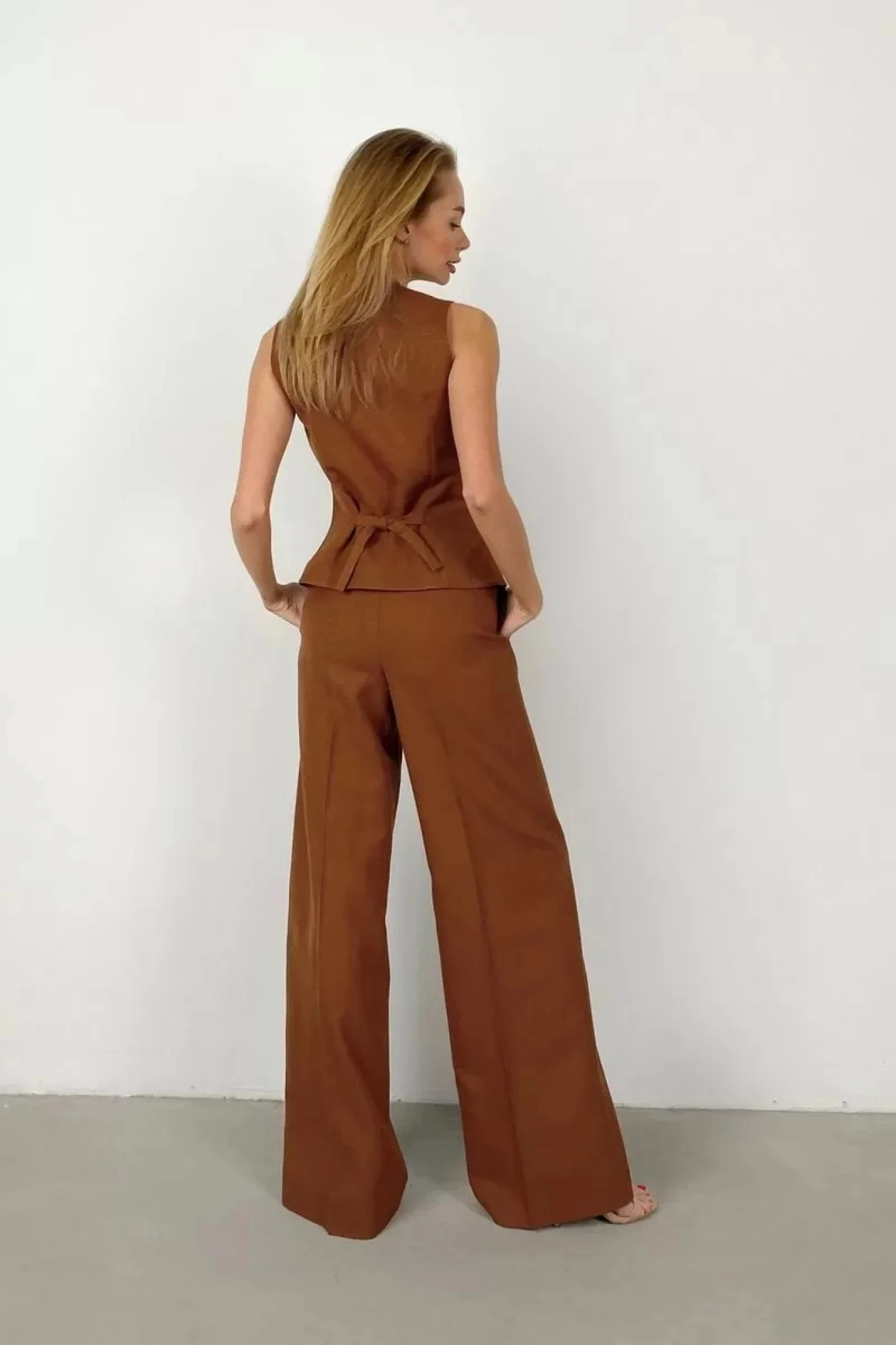 Брюки клёш со средней посадкой. Карманы в боковых швах и сзади. Застежка на крючок и молнию. Брюки выполнены из костюмной ткани с шерстью, по всей длине на подкладке. Модель на фото размера S, рост 176 см, размер костюма S