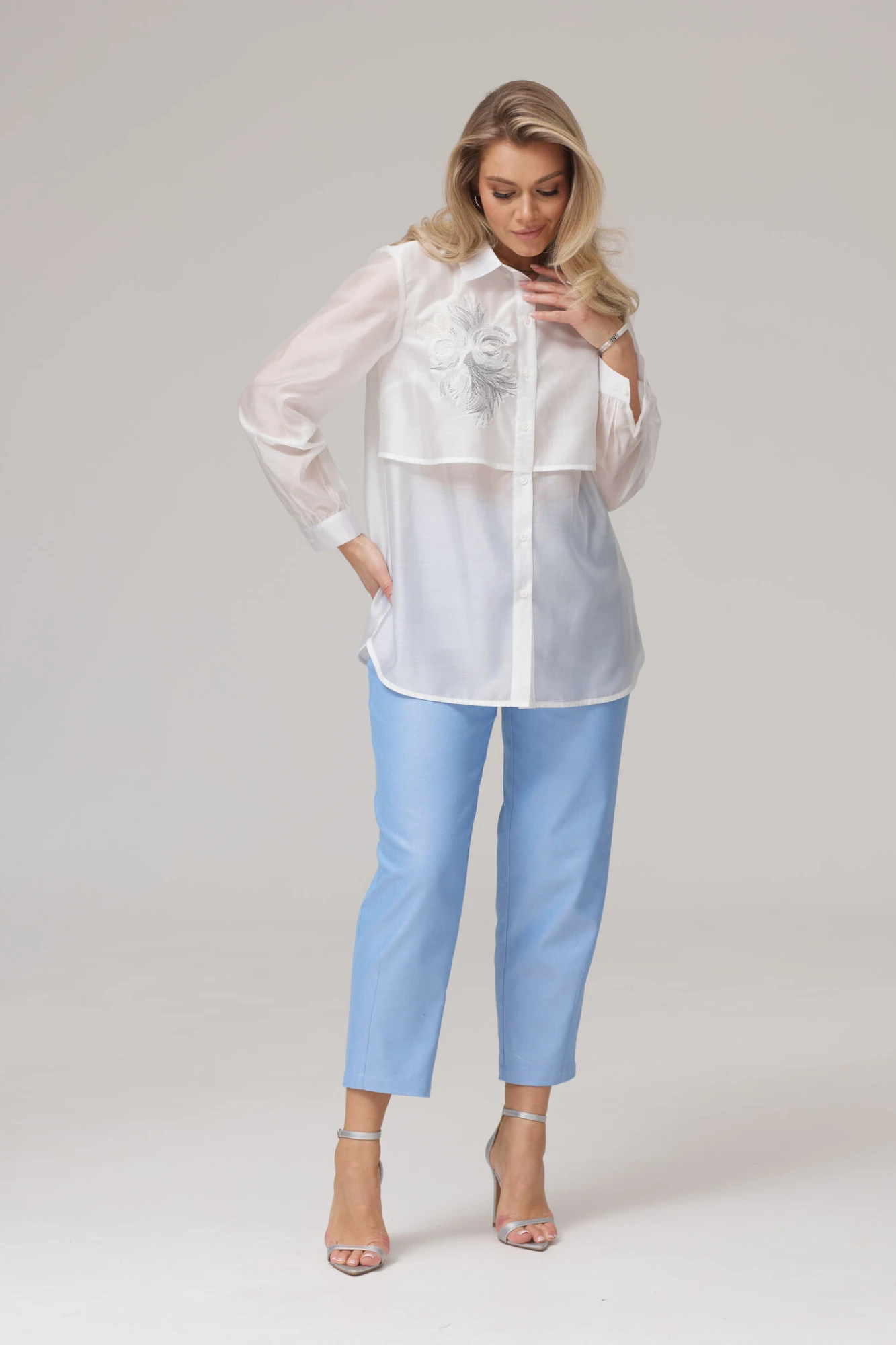 Брюки женские типа «бананы». По переду обработаны фигурные карманы, застежка на молнию, отстрочены складки. Сзади фигурная отстрочная кокетка и фигурные накладные карманы, декорированные металлическими хольнитенами. Верх обработан притачным поясом со шлевками, застегивающимся на кнопку. По низу брюк спереди и сзади отстрочены вытачки. Декоративные элементы и фурнитура могут отличаться от заявленных на фото. Цвет материала может отличаться по тону в зависимости от настроек вашего монитора!