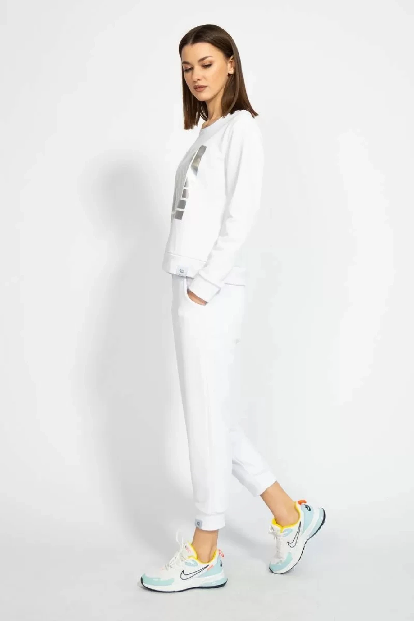 Брюки-джоггеры, укороченные, средней посадки, зауженные к низу с карманами в боковых швах. Обработка низа брюк манжета из основной ткани. Ткань футер 3-х ниточный с внутренним слоем на петельной основе, качество Пенье, плотность 435 г.м2. Максимально качественная ткань с софт текстурой.
