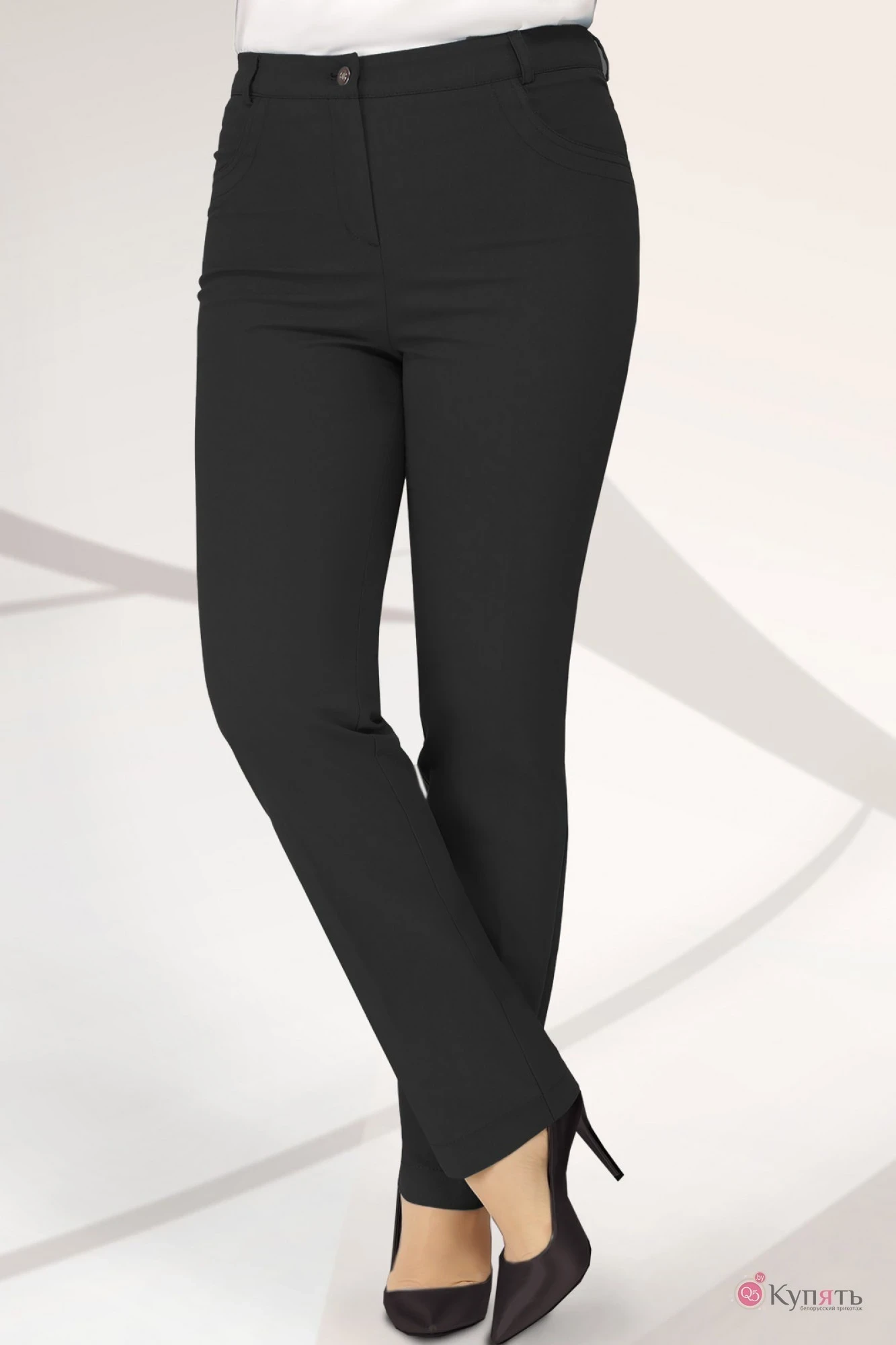 Эти удобные брюки - отличный вариант для повседневной носки. Брюки чуть зауженные к низу, на задней половинке брюк - кокетка и накладные карманы. Спереди фигурные подрезы, имитирующие карманы. Брюки на притачном поясе со шлевками с застежкой на молнию и петлю-пуговицу. В размерах 56-64 вставлена резинка. Ткань габардин, тянущаяся.
