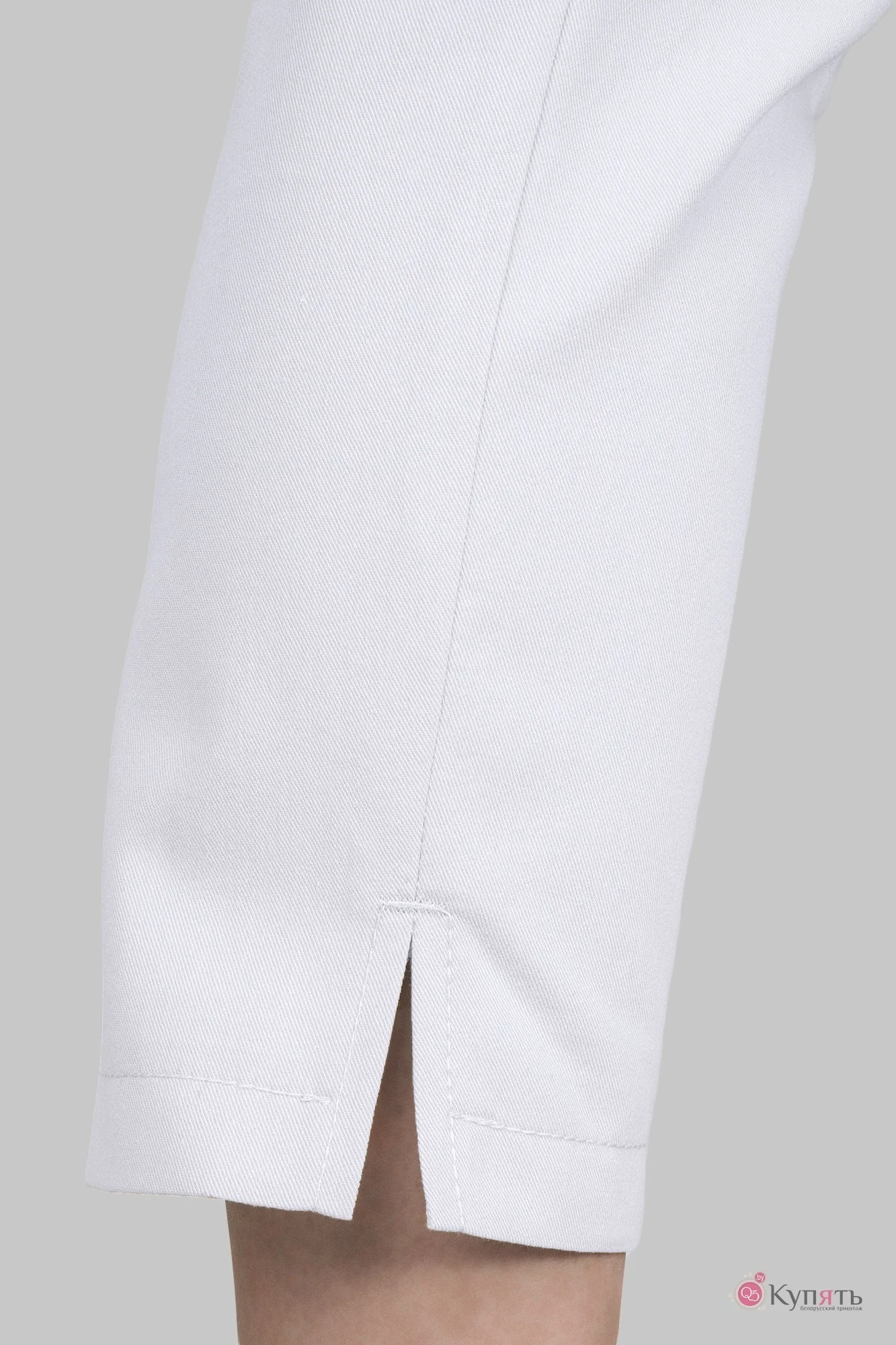 Летние укороченные Брюки 7/8 . По переду имитация кармана. Сзади накладные карманы. Брюки застёгиваются на молнию спереди. Зауженные к низу с боковым разрезом.