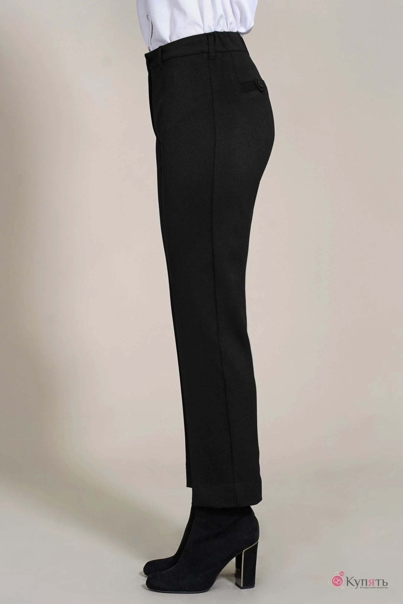 Брюки застёгиваются на молнию. В задней части пояса вставлена резинка.