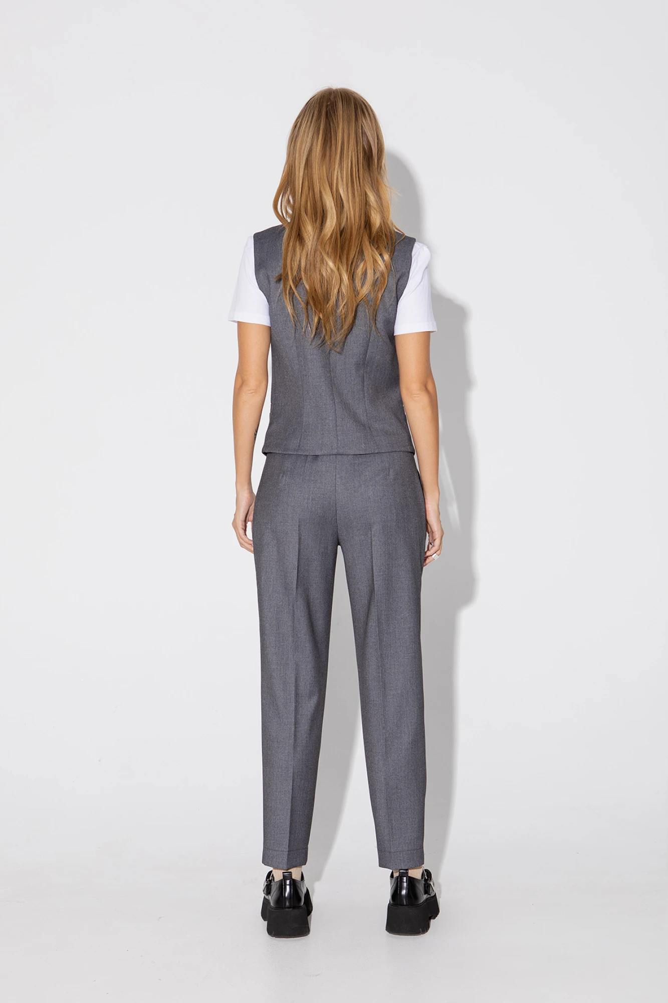 Классические укороченные брюки со стрелками. Детали: брюки со средней посадкой, притачной пояс со шлевками, передние половины с небольшими мягкими складками и заутюженными стрелками, застежка на молнию и пуговицу, боковые карманы. Длина брюк по боковому шву с поясом около 97 в размерах 40-46 и около 98,5 см в размерах 48-52, длина по внутреннему шву около 70 см