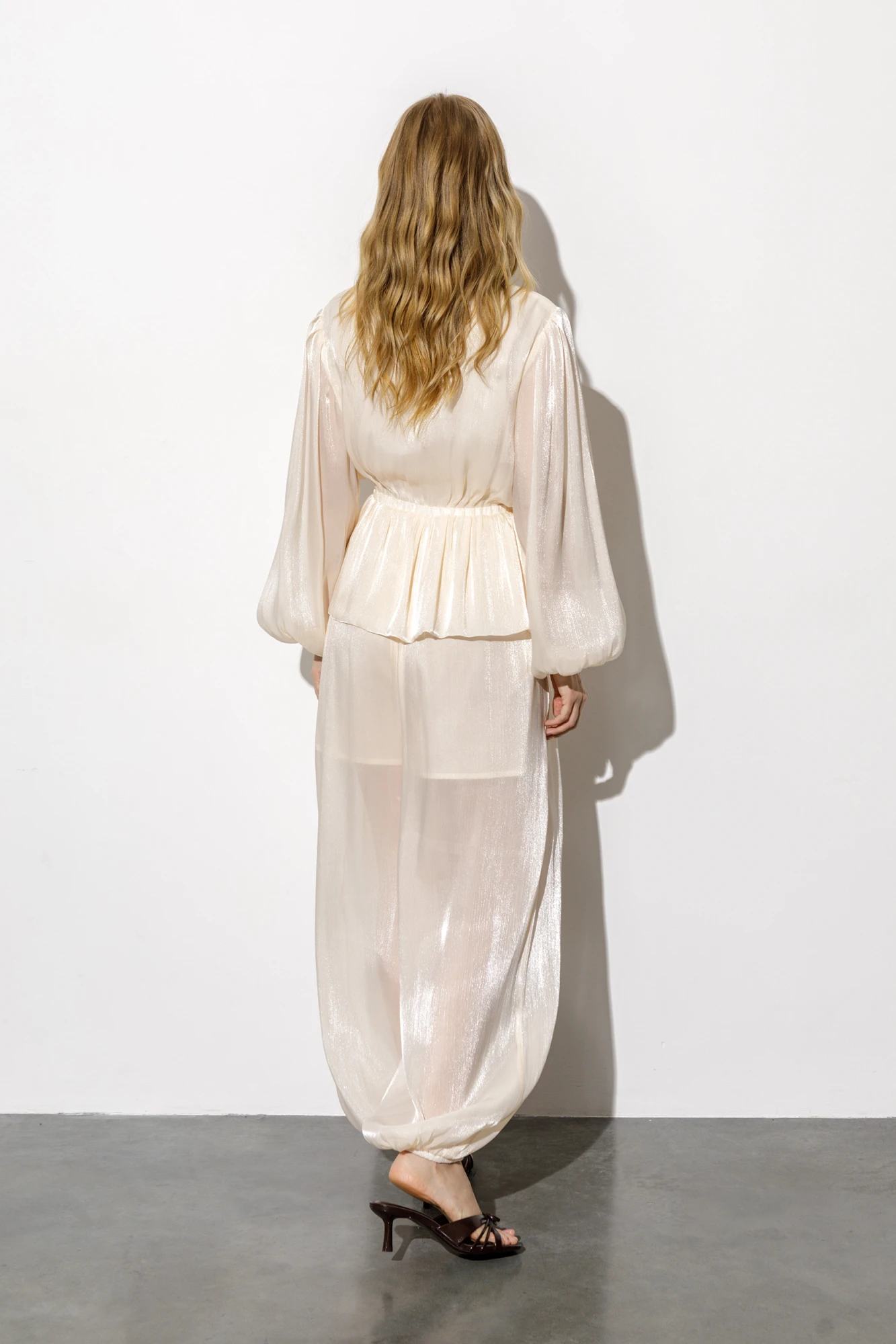 Широкие свободные брюки-алладины из фактурного шифона (приобрести блузу с фото можно по арт. 6736).