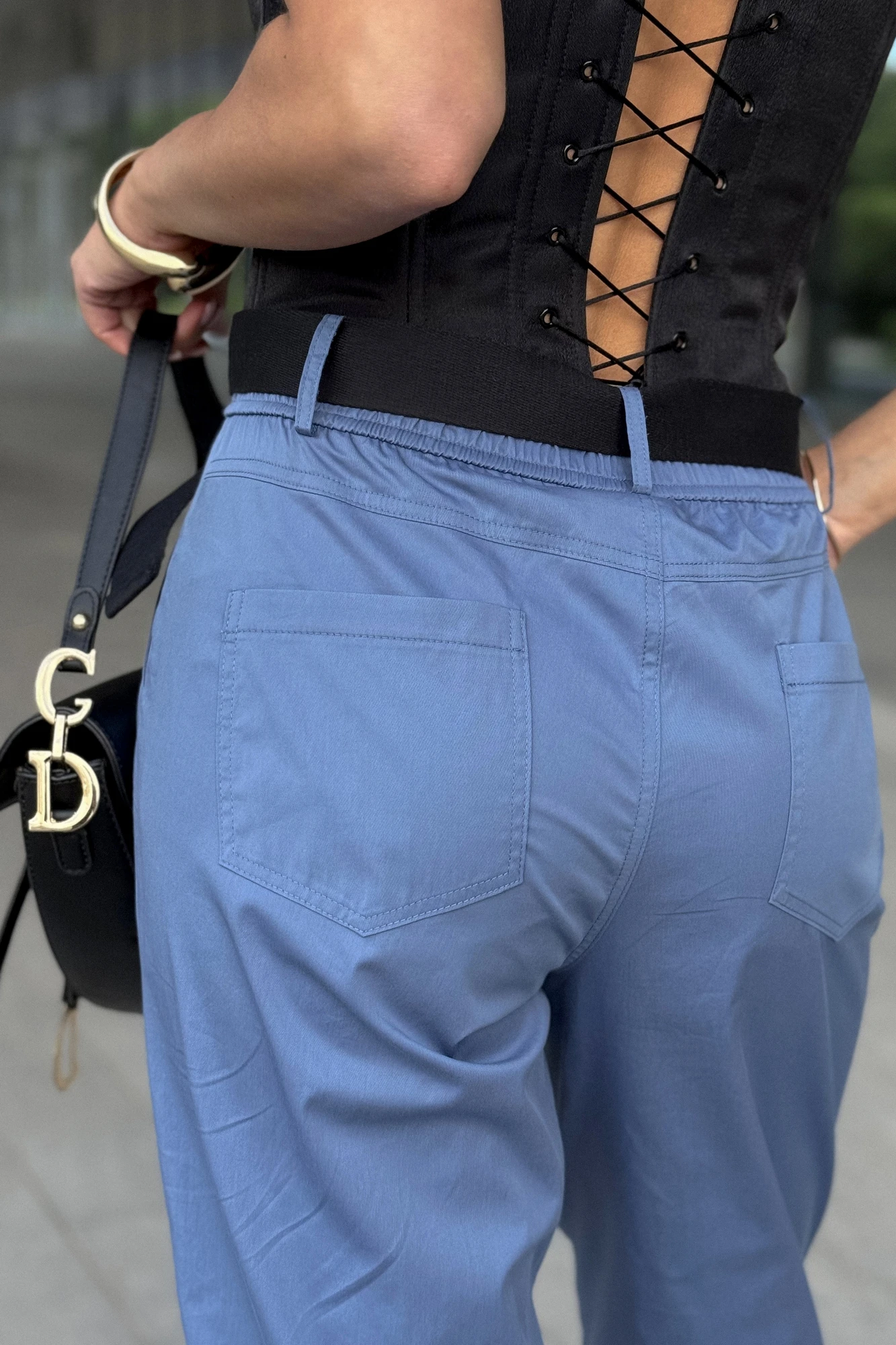 Ширина брючины по низу 16 см. Длина по боковому шву с учетом пояса 101 см