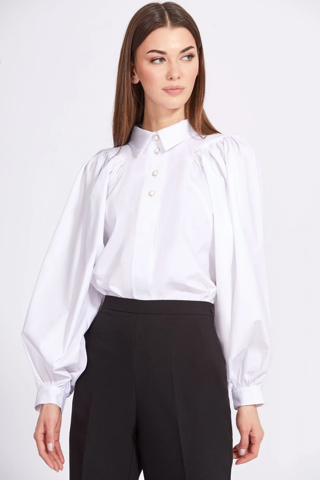 Брюки выполнены из однотонной костюмной ткани, заужены к низу, на задних половинках карманы с листочкой, застежка в боковом шве на потайную молнию и пуговицу. По низу в боковом шве разрезы.
