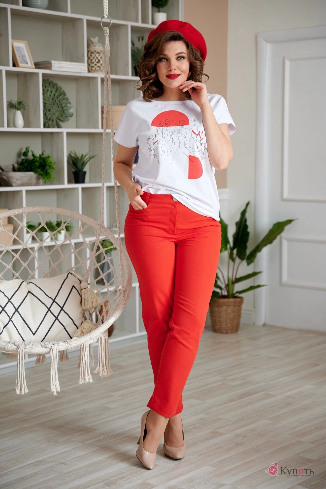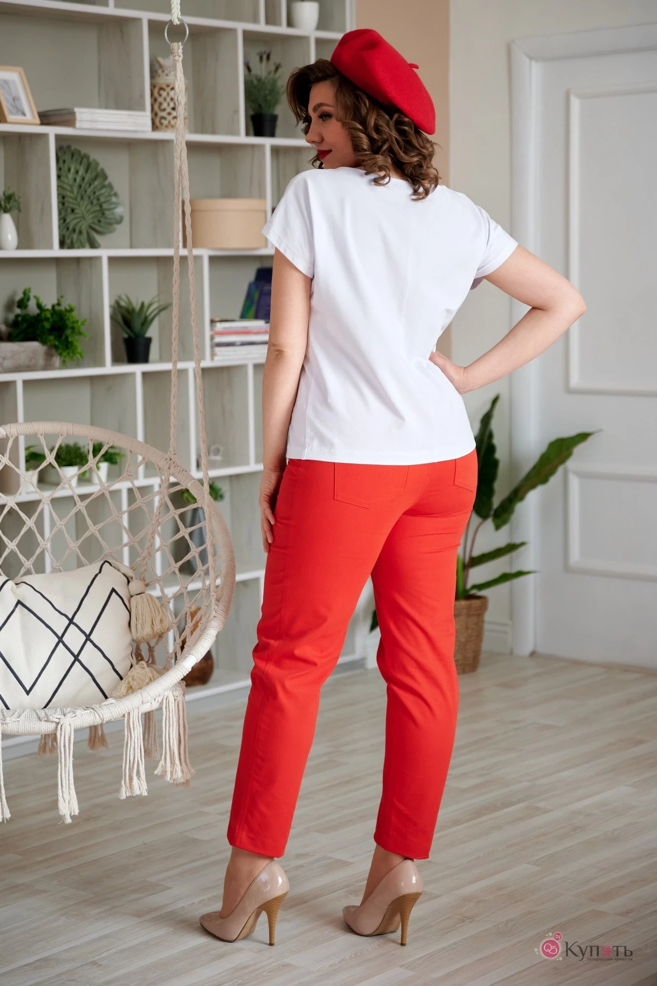 Брюки женские из хлопкового джинса со стрейчем. Брюки с высокой посадкой. Карманы сзади и спереди. Пояс притачной. По спинке распололжена резинка.