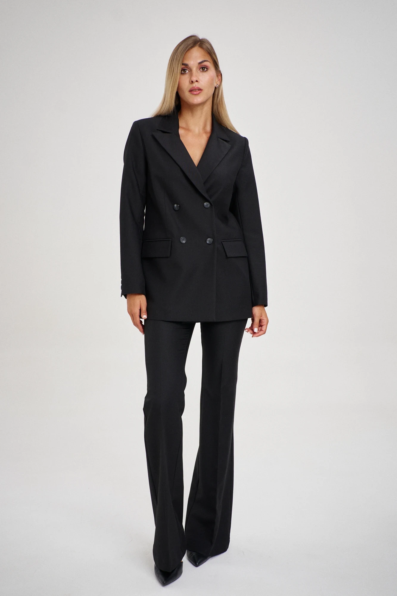 Классические расклешенные брюки полупрелегающегоьсилуэта с высокрй посадкой, пояс притачной со шлевками, застежка на молнию и петлю-пуговицу, брюки без карманов. Выполнены из премиальной ткани костюмной группы.