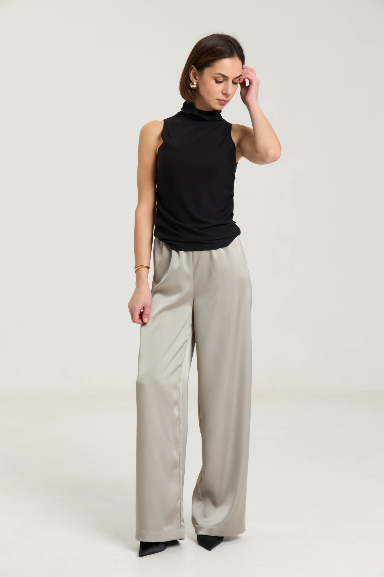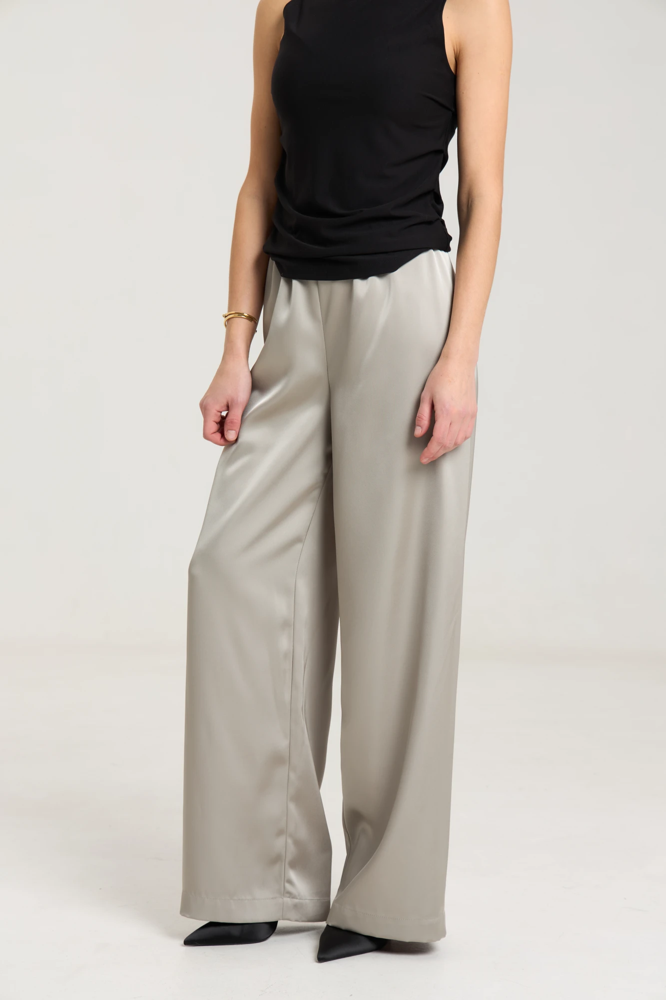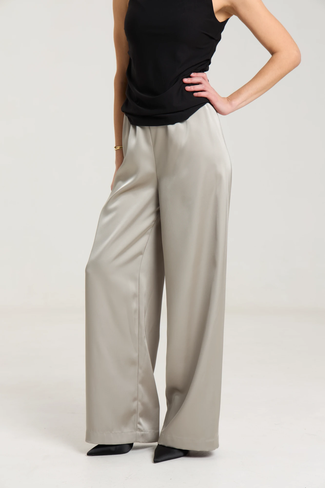 Атласные брюки прямого, свободного кроя из струящегося атласа бесспорно станут вашим фаворитом в гардеробе, талия высокая, брюки на резинке , длина по боковому шву 110 см.Вещи из атласа отлично вписываются в любой стиль и подходят для разных поводов, удобная посадка, не сковывают движения.Атлас плотный. Рост модели на фото 178 см.