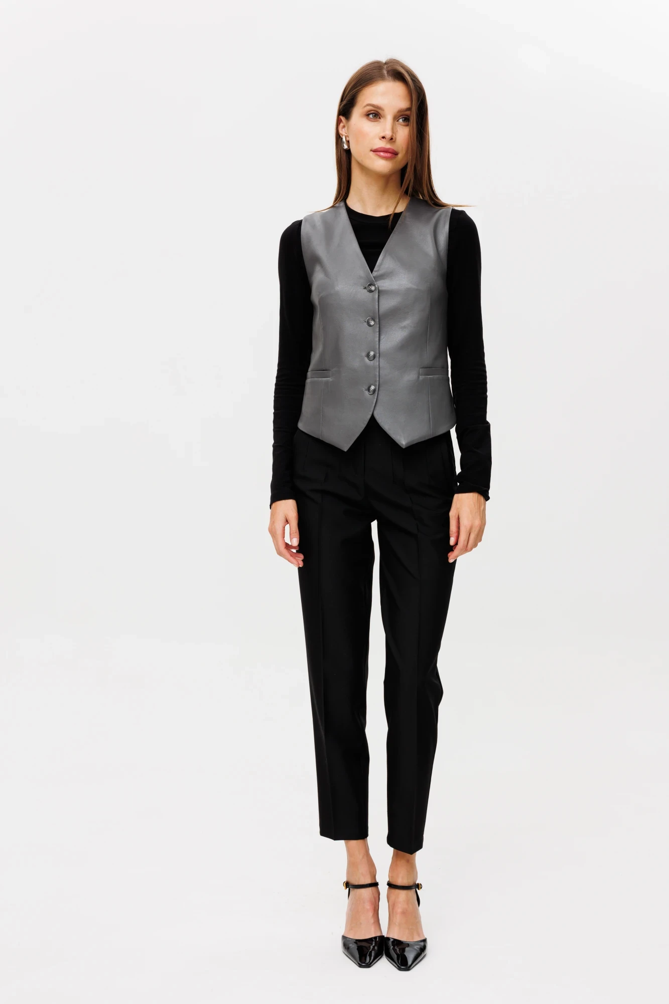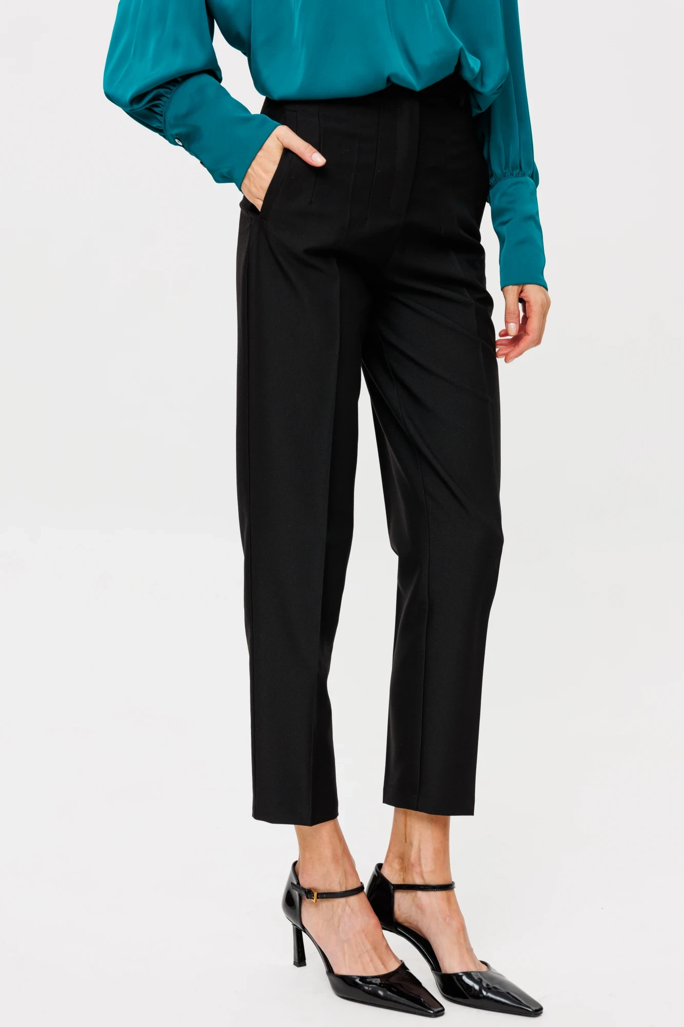 Классические современные брюки имеют довольно универсальный фасон, надевать такую модель можно и на работу в офис, и на прогулку с друзьями, и даже на торжественные мероприятия, подбирая соответствующий верх, обратите внимание на блузку с артикулом 2232,арт 2232, арт 2232-1. Модель со стрелками, на притачном поясе со шлёвками, застежка на молнию и декоративную петлю- пуговицу. По бокам прорезные карманы в рамку, посадка высокая. Данная модель подходит на любой тип фигуры. Длина по боковому шву 96 см, полуобхват внизу брючины16см, полуобхват бедер 46 см в 44 размере, полуобхват талии 35 см.
