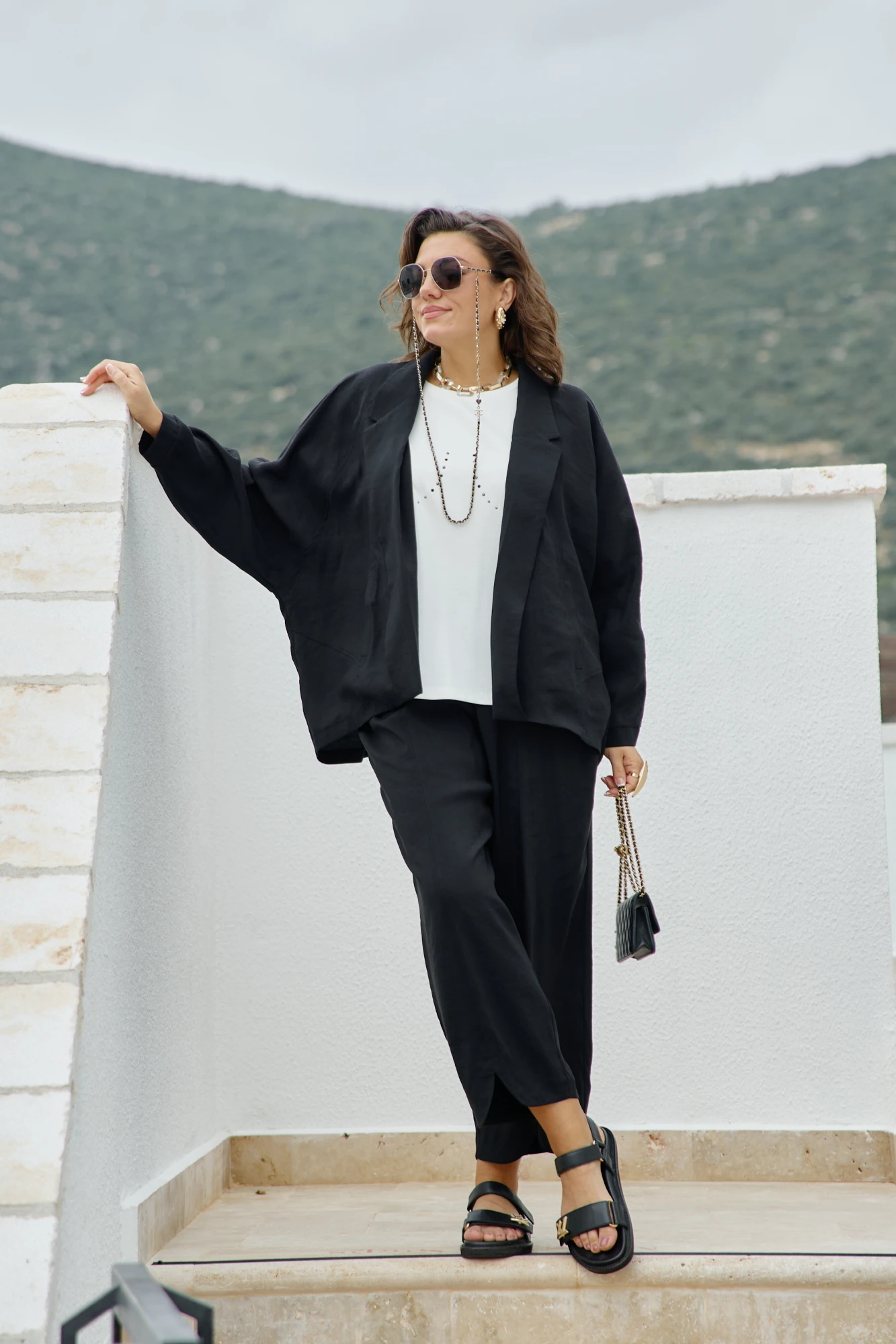 Брюки легко сочетаются с любым предметом вашего гардероба, вертикальные швы стройнят и вытягивают фигуру. Брюки незаменимы для прогулок, посиделок с друзьями, похода в кафе и отдыха. Модель свободного кроя органично впишется в гардероб, всегда будет элегантной и уместной, эта модель «вне времени» и будет актуальна в следующих сезонах. Брюки комфортны в носке на каждый день, создают женственный и элегантный образ. Мы используем материалы высокого качества, делаем акцент на фигуру и современный крой, что позволяет нашим изделиям не терять актуальности, а для вас служить выгодным приобретением. Длина брюк 99 см."
