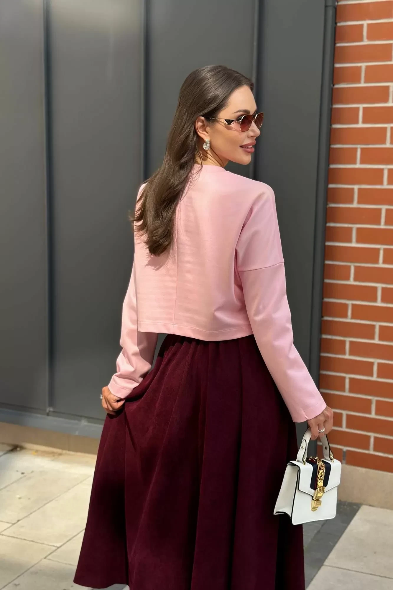 Джемпер выполнен из трикотажа средней плотности . Рукава втачные, длинные. Спинка стачная, с центральным швом.