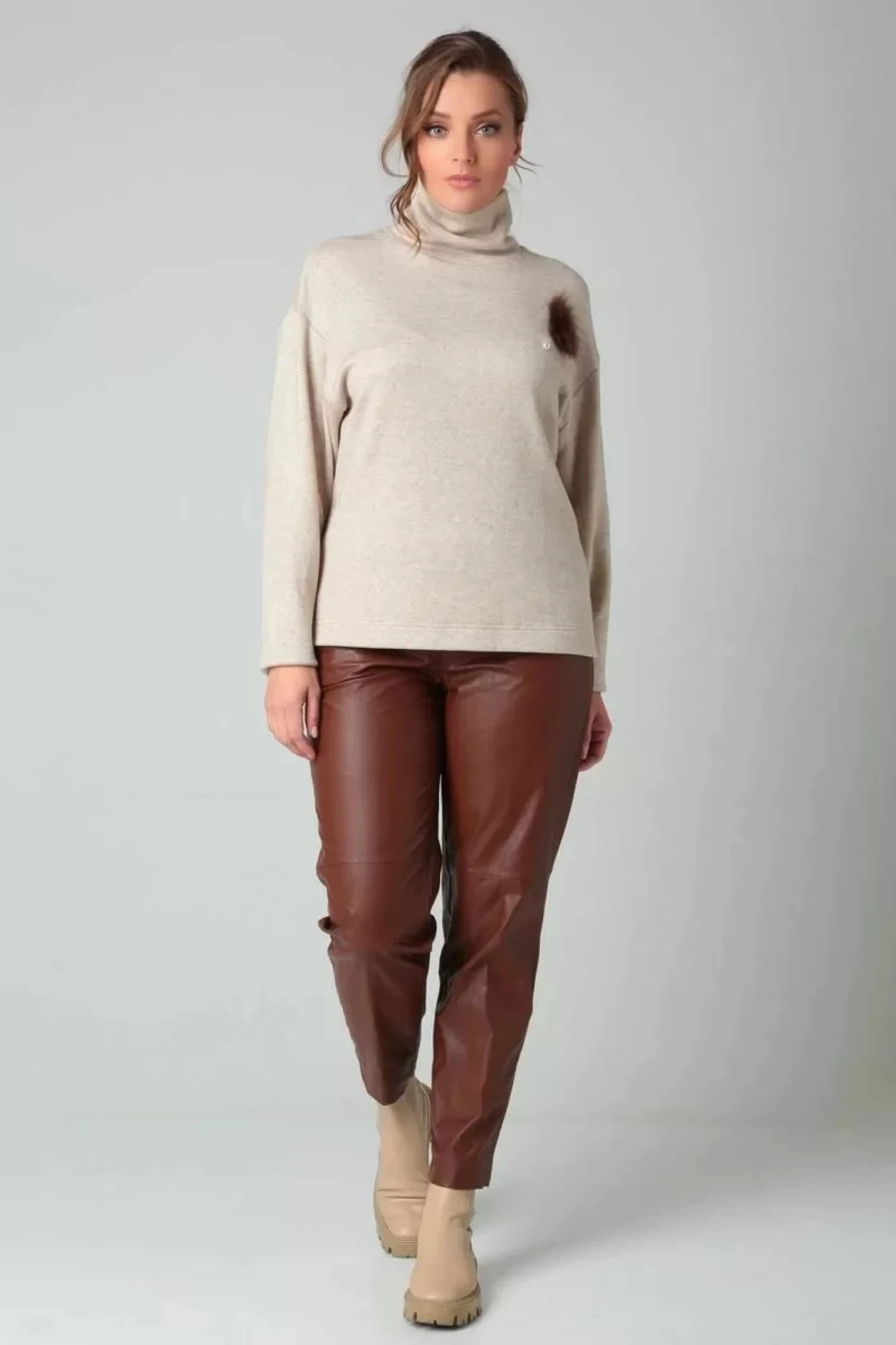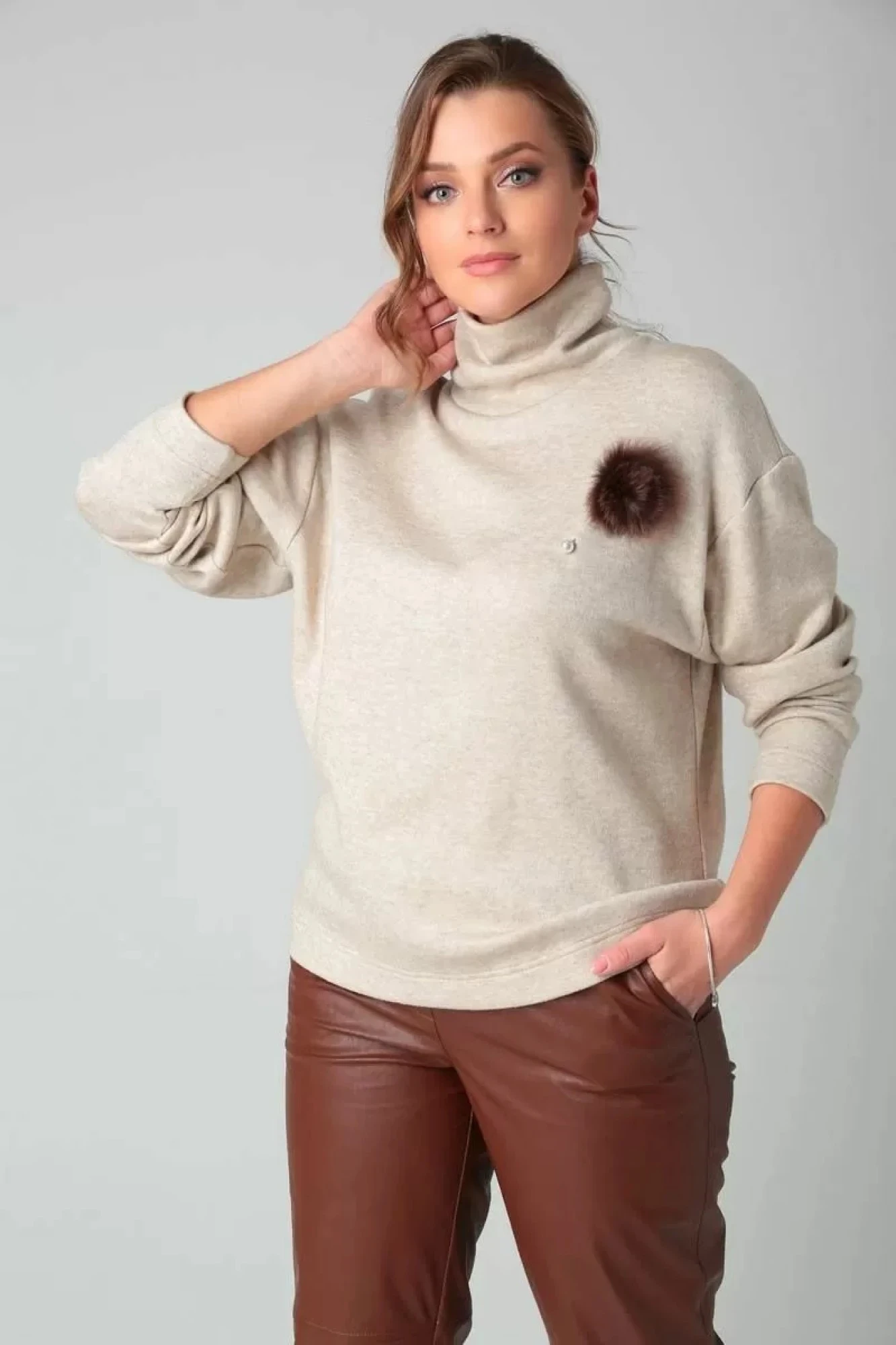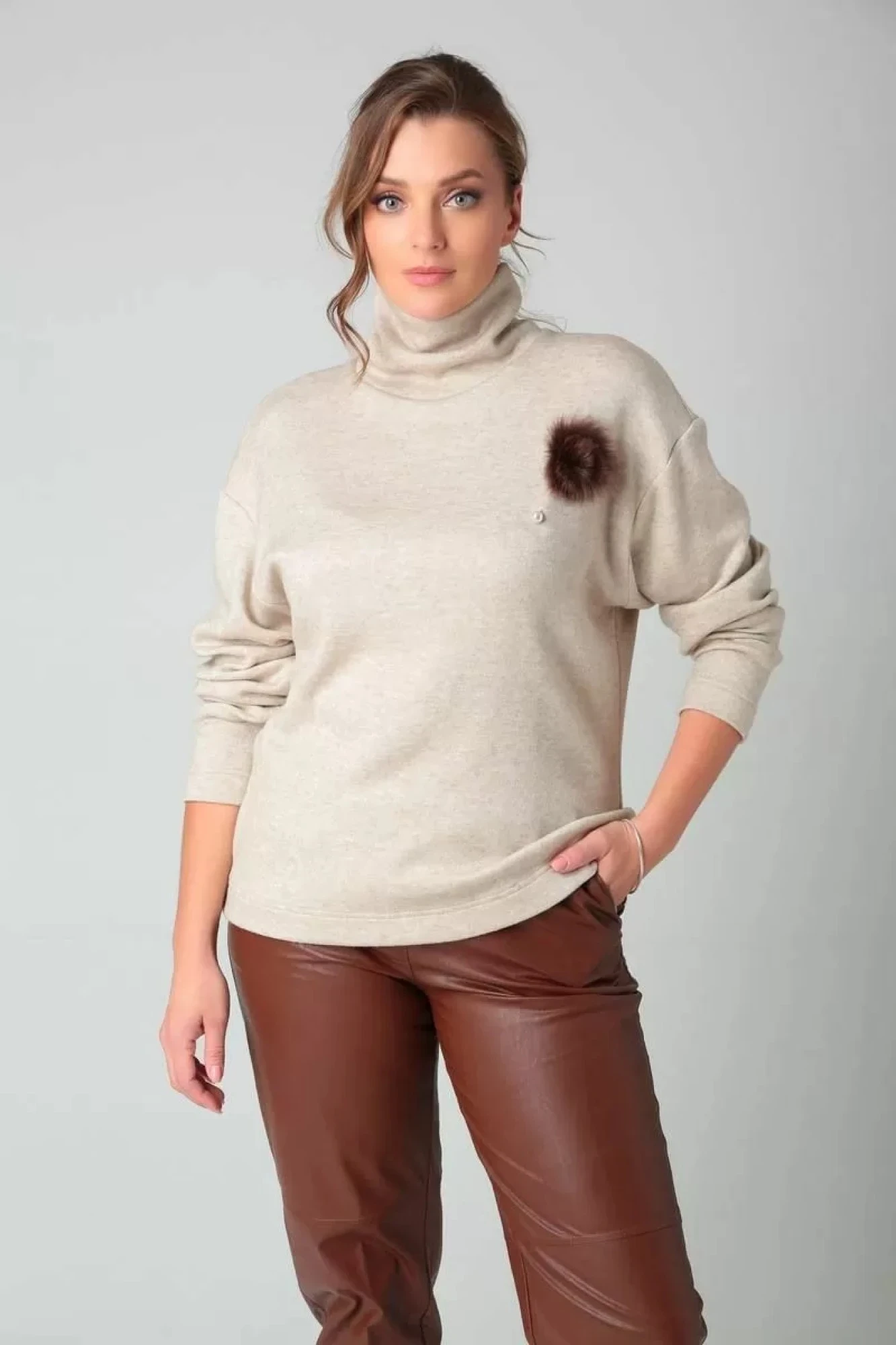 Джемпер из приятного к телу трикотажа по типу “Ангора” свободного кроя с брошью. Cохраняет цвет и форму после многочисленных стирок. Укутавшись в наш мягкий джемпер зима будет уютной и тёплой.