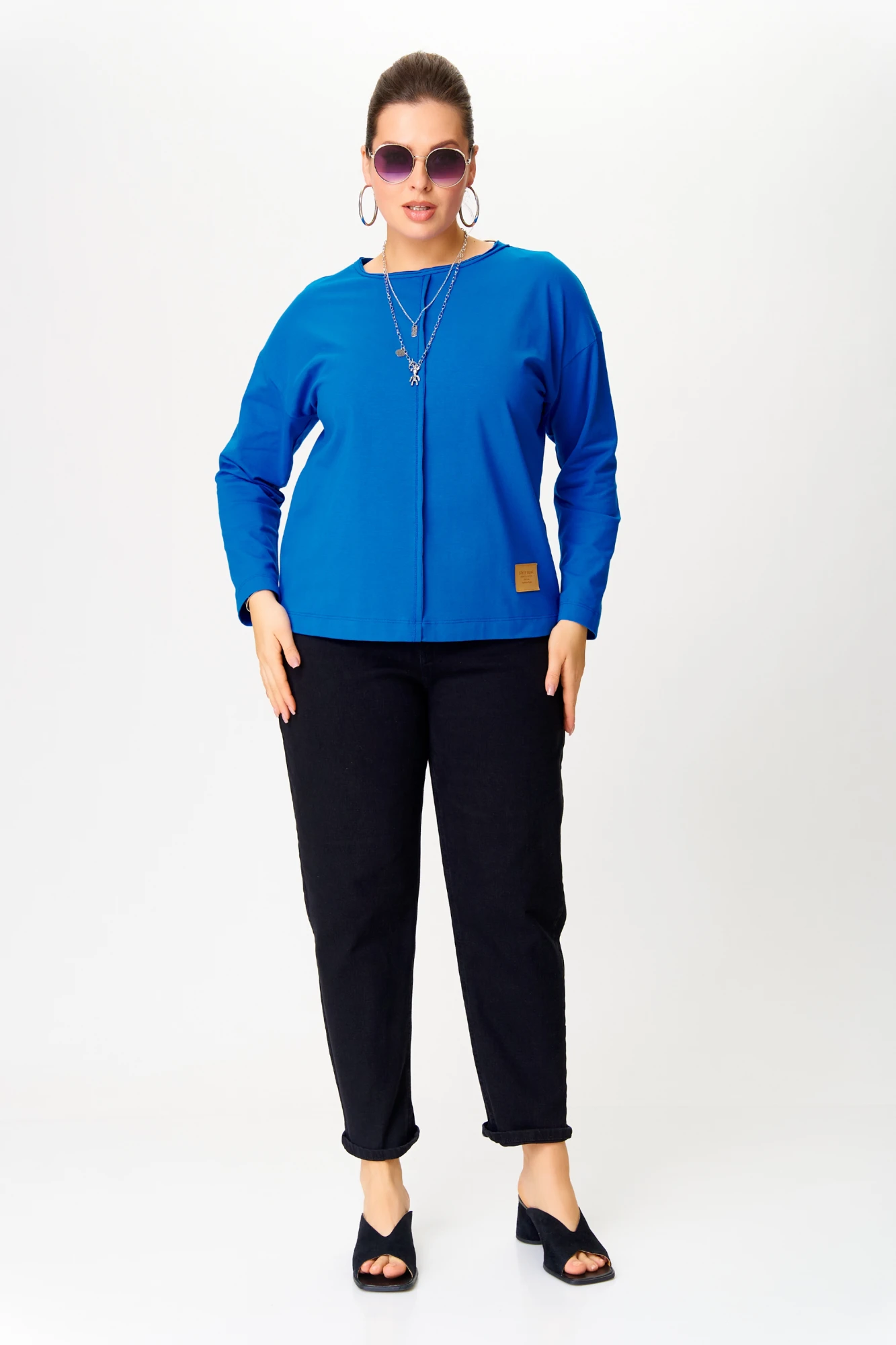 Джемпер женский с необработанной округлой горловиной и спущенной
