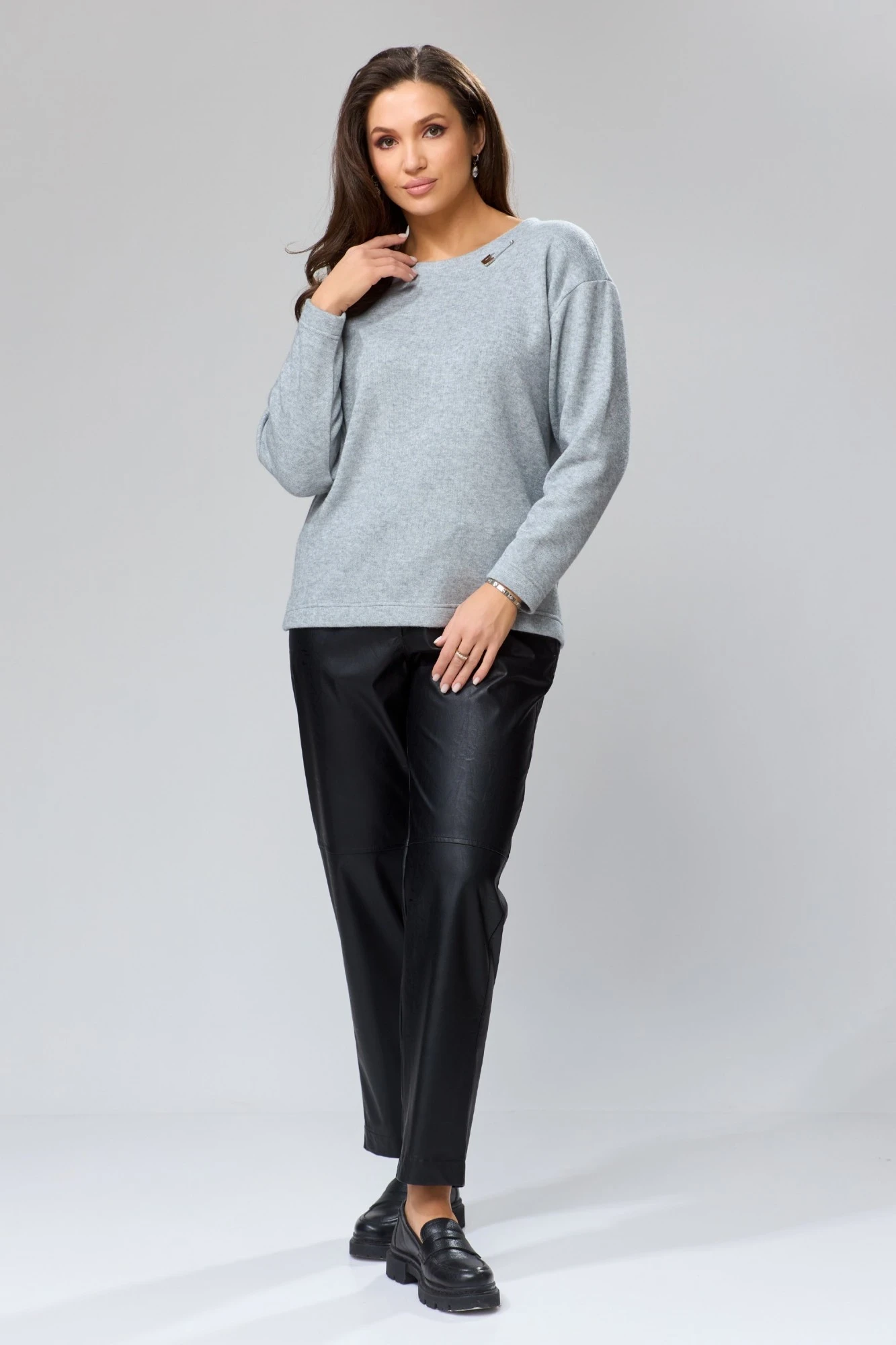 Джемпер из приятного к телу трикотажа по типу “Ангора” свободного кроя с брошью. Cохраняет цвет и форму после многочисленных стирок. Укутавшись в наш мягкий джемпер Вам будет уютно и тепло. Декоративные элементы и фурнитура могут отличаться от заявленного на фото!