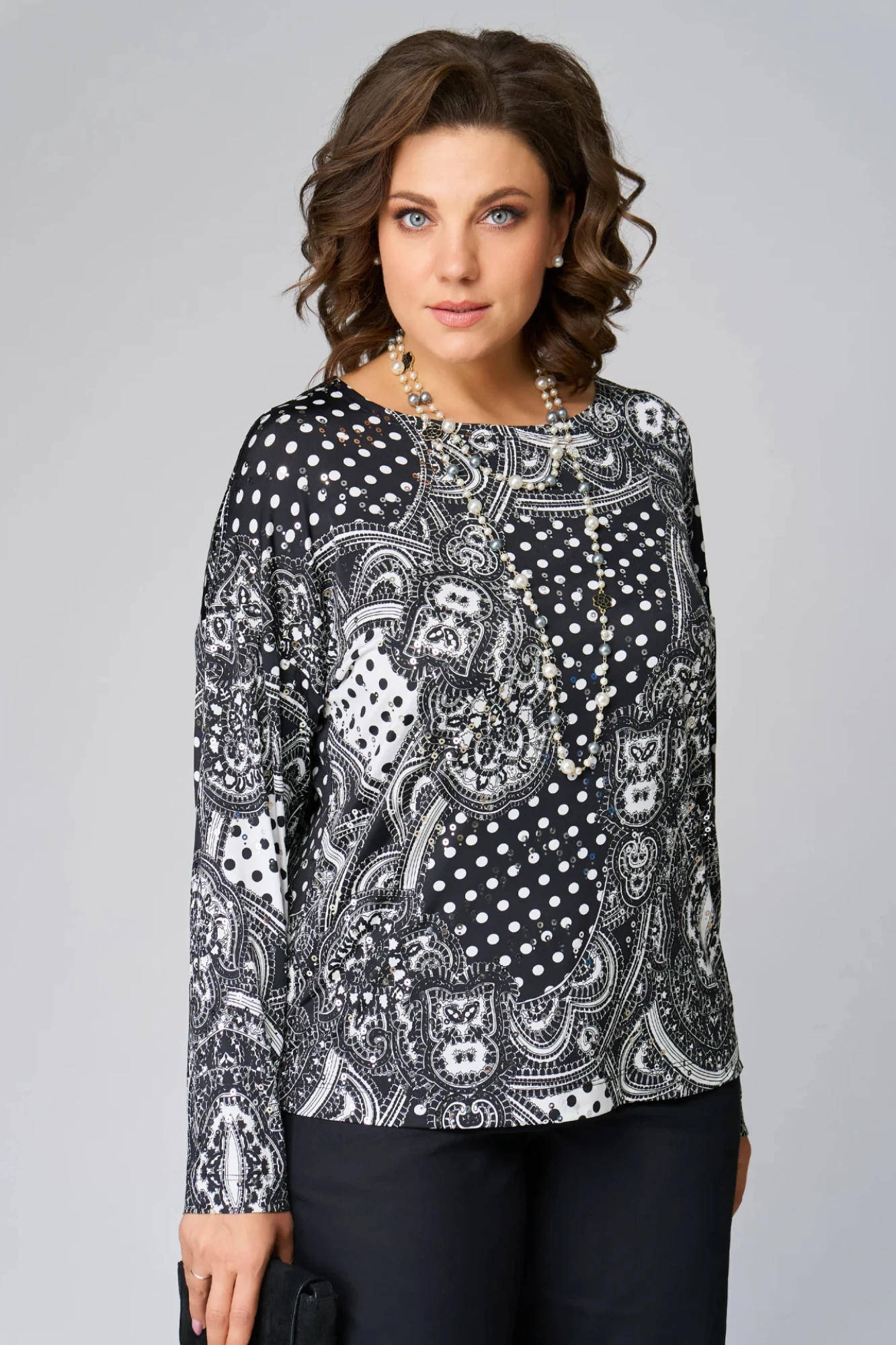 Джемпер (кофта) Bliss 8169 черный/белый/пайетки/принт