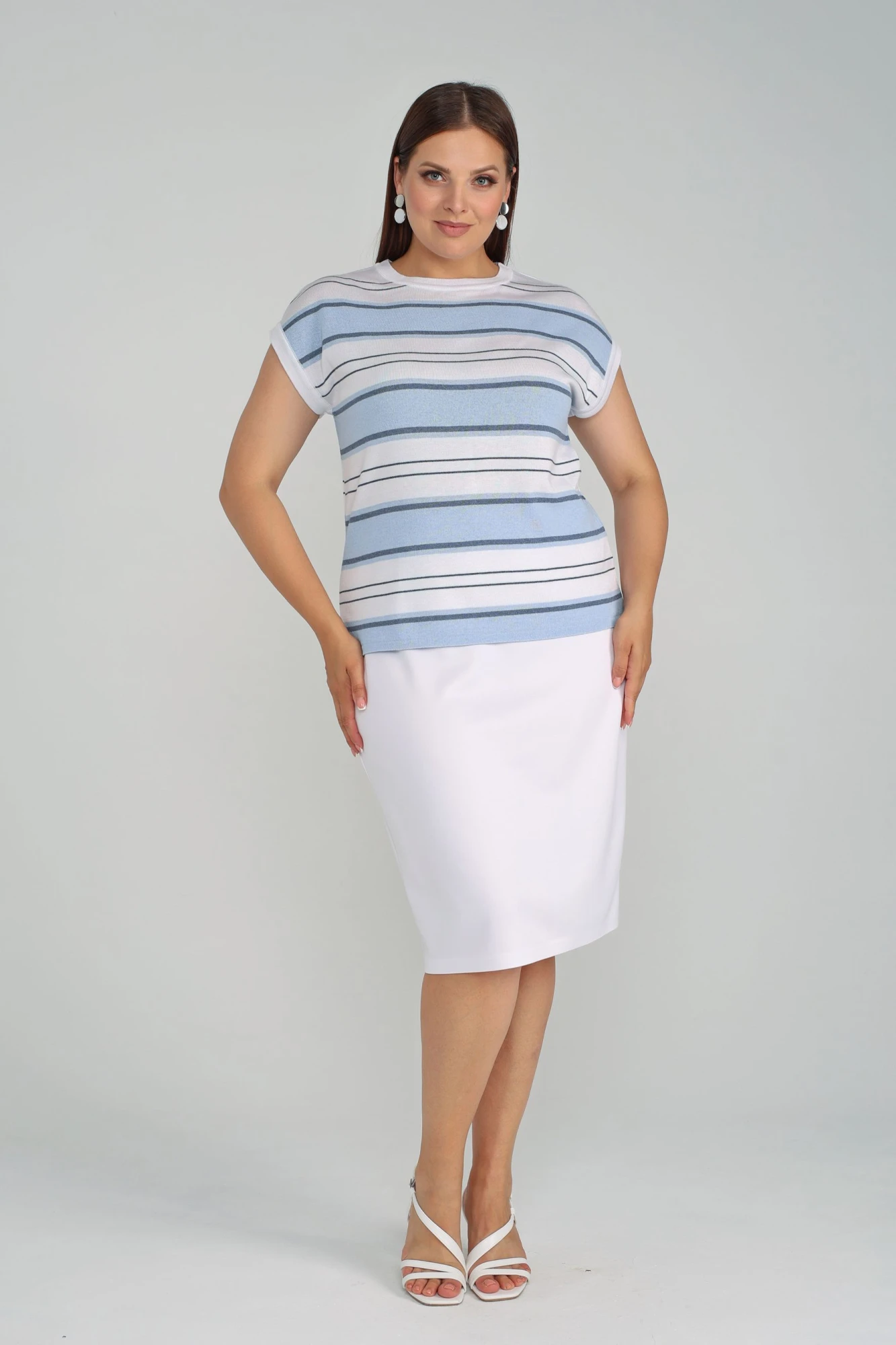 Этот женский трикотажный джемпер - идеальный выбор для летнего гардероба. Созданный из нежной на ощупь ткани, он гарантирует комфорт и удобство в жаркую погоду. Короткие рукава позволяют сохранять прохладу, а стильный силуэт кофты подчеркивает вашу индивидуальность. Кроме того, этот джемпер может быть идеально сочетан с майкой или другими предметами гардероба, что делает его универсальным и практичным решением для каждого дня. Выберите этот женский трикотажный джемпер с короткими рукавами и наслаждайтесь летом в удобстве и стиле