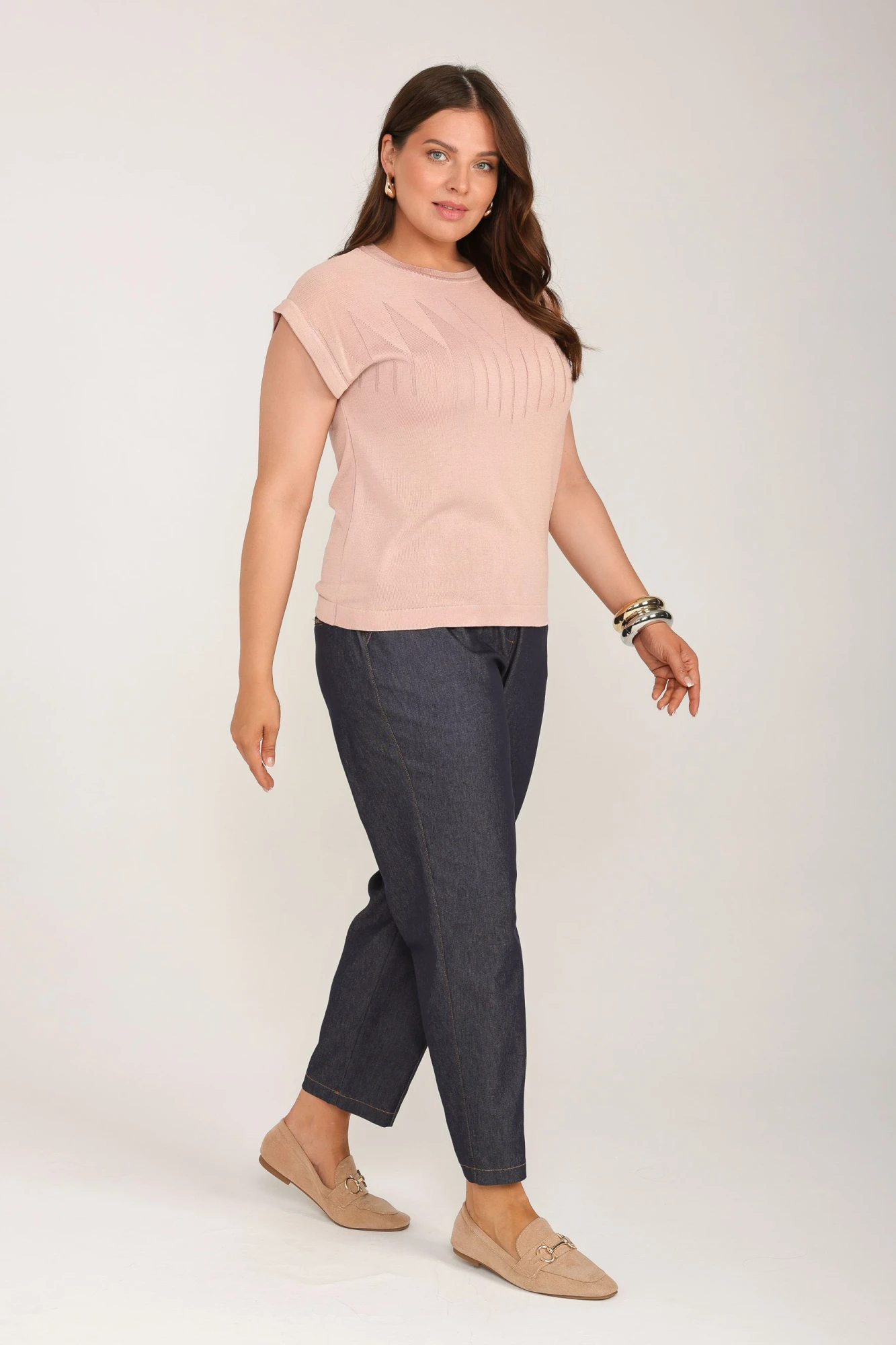 Приталенный женственный джемпер – идеальный выбор для тех, кто ценит комфорт и стиль.Изготовлен из мягкой трикотажной ткани, которая приятна к телу, позволяет коже дышать и эффективно впитывает влагу, не вызывая раздражения. Представлен в различных расцветках, что позволяет подобрать модель, которая идеально впишется в любой гардероб . Прямой свободный крой не сковывает движений и выгодно подчеркивает фигуру.