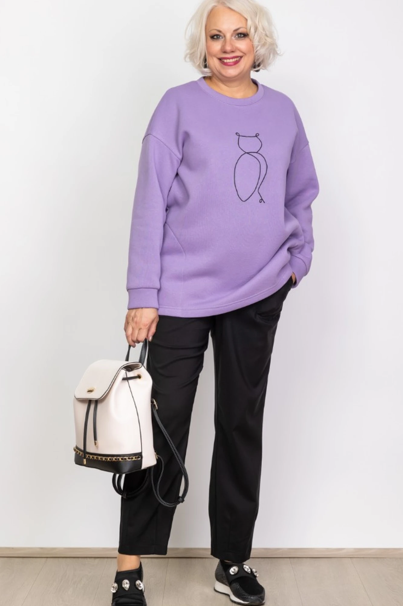 Женский свитшот от Camelia выполнен из качественного хлопкового трикотажа с начесом. В боковых швах – удобные карманы. Наша теплая и уютная байка станет незаменимой вещью в Вашем осенне-зимнем гардеробе. Женская теплая кофта отлично подходит для любого случая - будь то прогулка по городу, встреча с друзьями или работы в офисе.