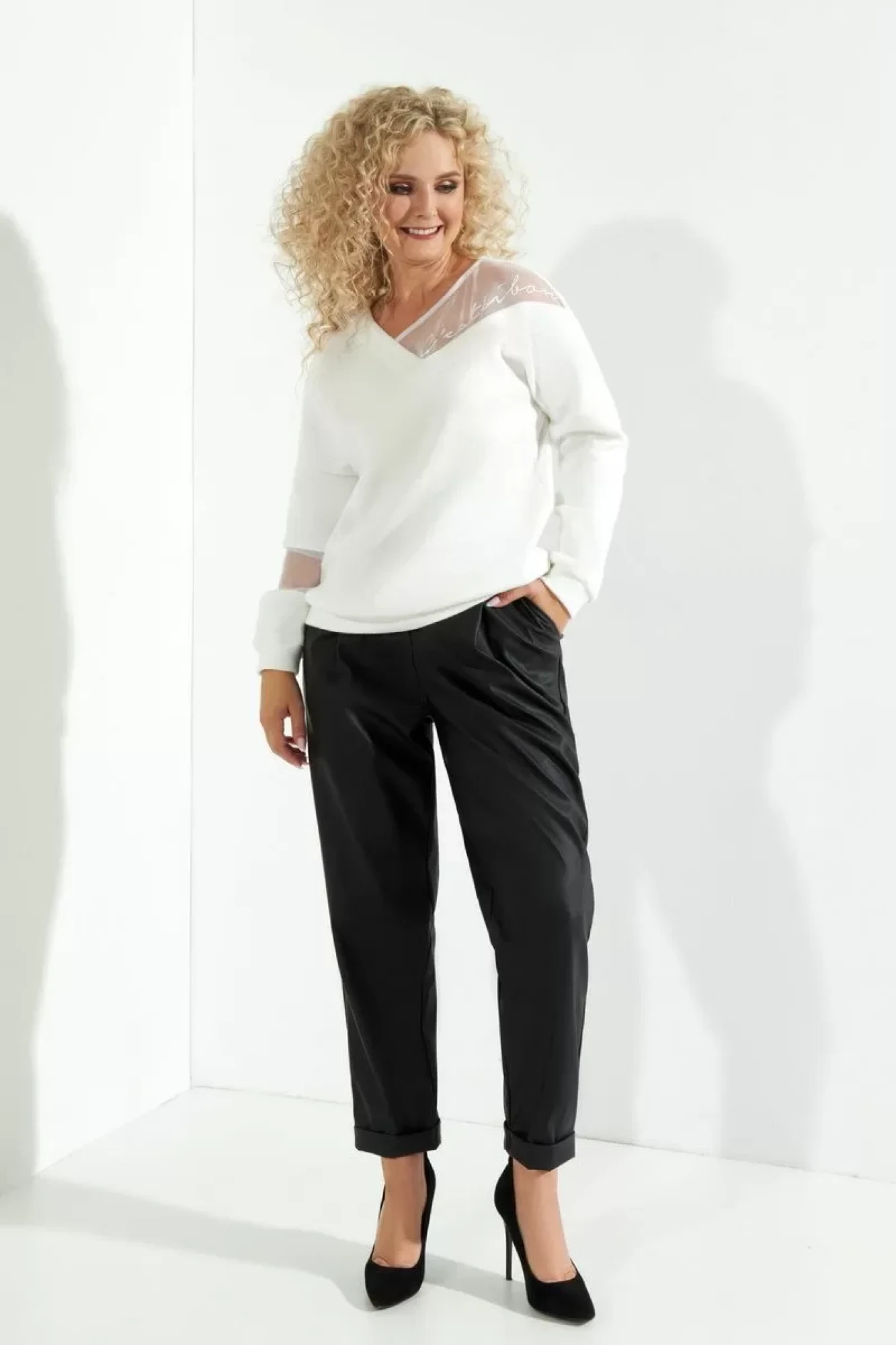 Джемпер женский ассиметричный выполнены из мягкого трикотажа. Изделие ассиметричного кроя с полупрозрачной вставкой из сетки по горловине и рукаву. Изделие декорировано термопечатью.