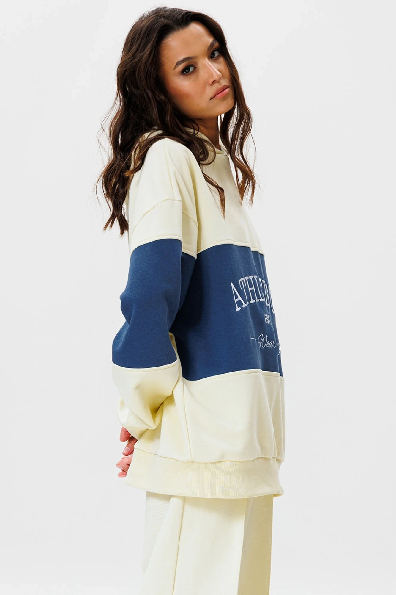 Стильное оверсайз худи с контрастной вставкой и вышивкой Athleisure станет любимым в гардеробе и составит идеальный образ с джинсами, леггинсами, шортами, юбкой и даже платьем. Athleisure - расслабленный и непринужденный стиль, основанный по большей части на спортивных базовых вещах. По сути, это даже не стиль, а способ носить базовые спортивные вещи.
