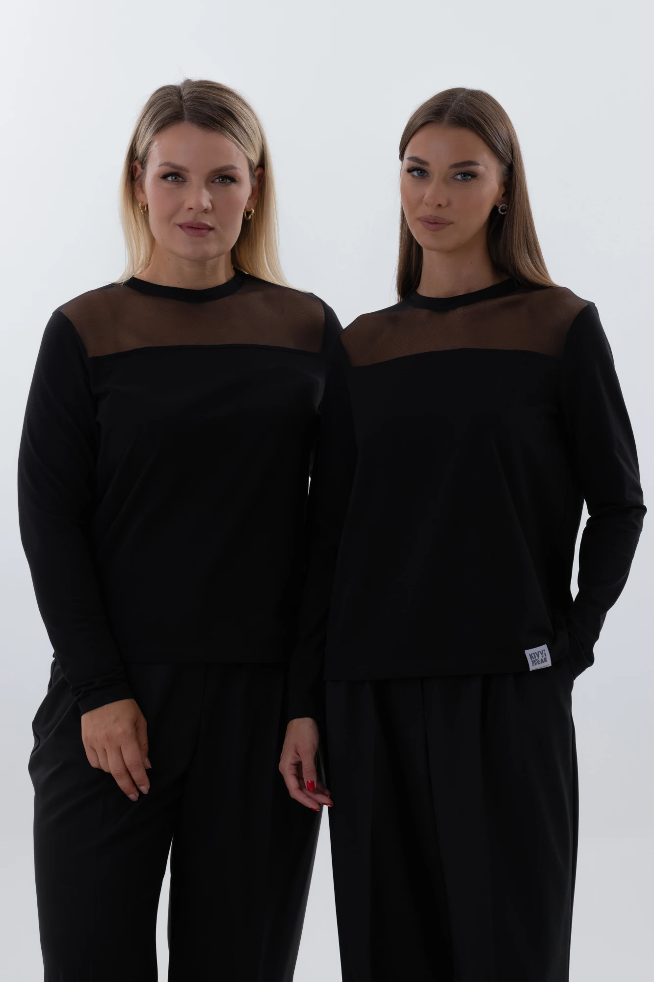 Главная деталь, задающая характер модели, — акцентная кокетка по переду из эластичной сетки в тон основной ткани. Этот дизайнерский прием добавляет образу современное измерение: деликатная прозрачность сетки создает игру фактур и визуальную глубину, оставаясь при этом гармоничной и сдержанной.