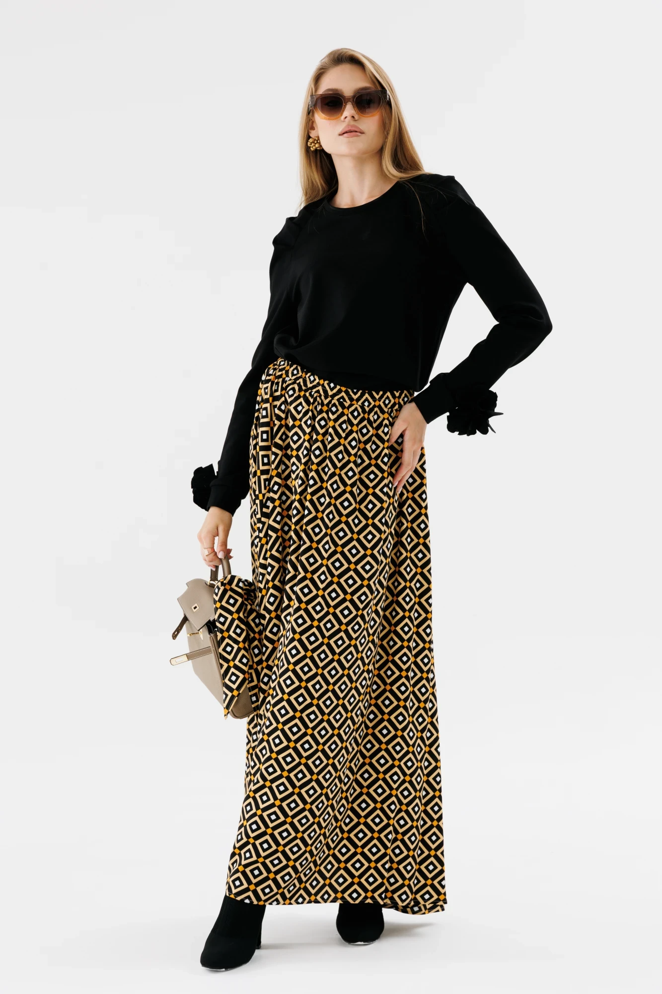 Уютный джемпер с округлой горловиной. Защипы на рукаве-реглане делают образ максимально женственным и элегантным. На рукавах есть съёмные авторские украшения в виде цветка из основной ткани.