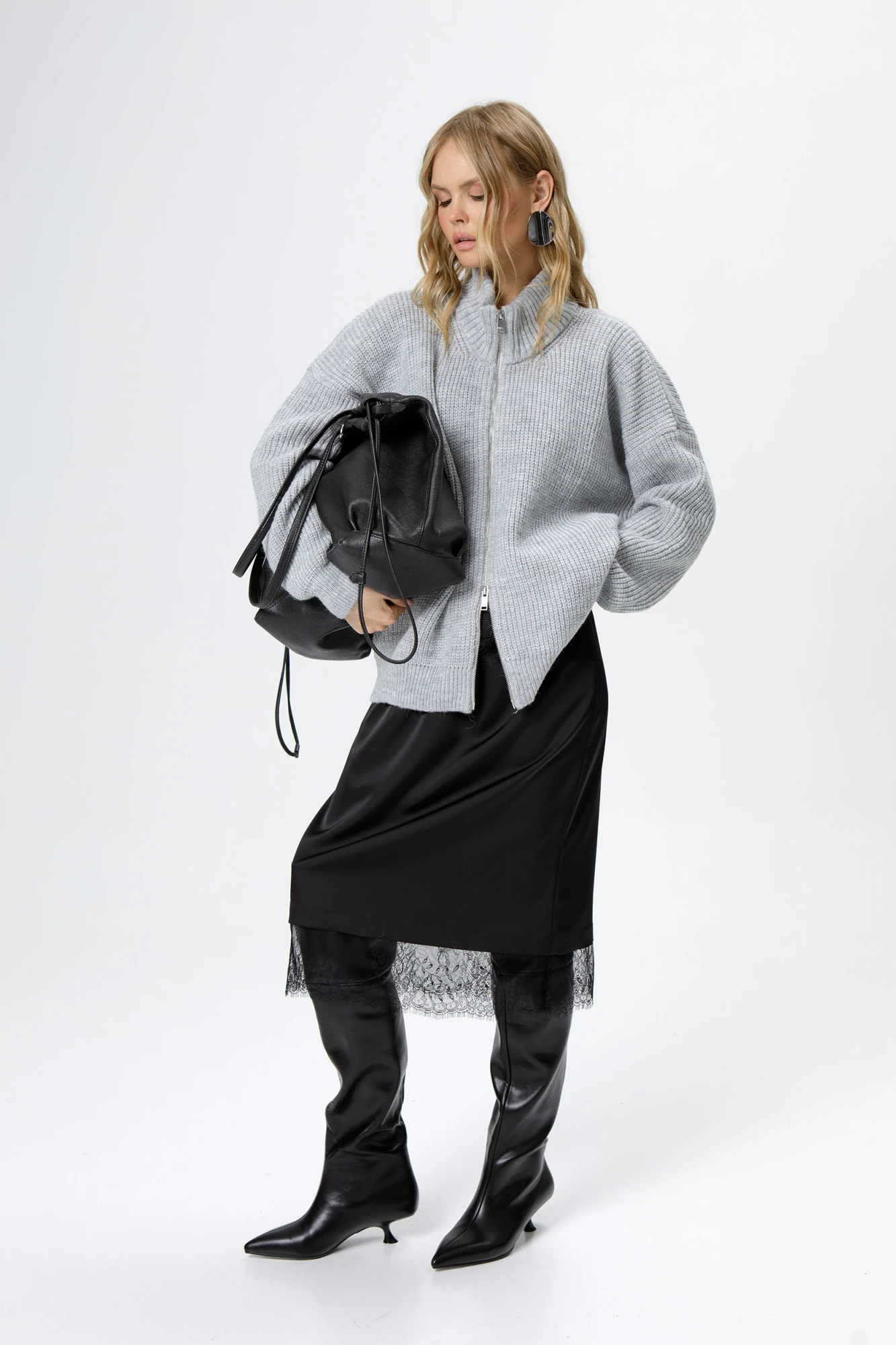 Вязанный объемный свитер на молнии с добавлением шерсти.