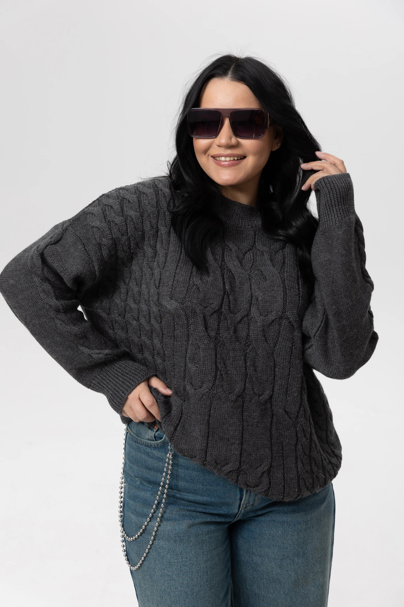 Классический базовый джемпер с длинным рукавом и спущенным плечом и акцентными косами по передней планке. Выполнен из высококачественной, мягкой и приятной к телу пряжи. Джемпер изготовлен специально для любителей свободных и легких вещей. Является базовой частью гардероба. Отлично сочетается с джинсами, брюками, юбкой и с любым типом обуви. Прекрасен на любой сезон, для работы, офиса, торжественного случая и повседневной носки. Благодаря своему составу изделие сохранит свою форму спустя множество стирок и прослужит вам не один сезон. Важная информация! Фото товара сделано при искусственном освещении студии. При естественном освещении цвета могут иметь другие оттенки. Сушите изделие горизонтально, разложив на полу или горизонтальной поверхности.
