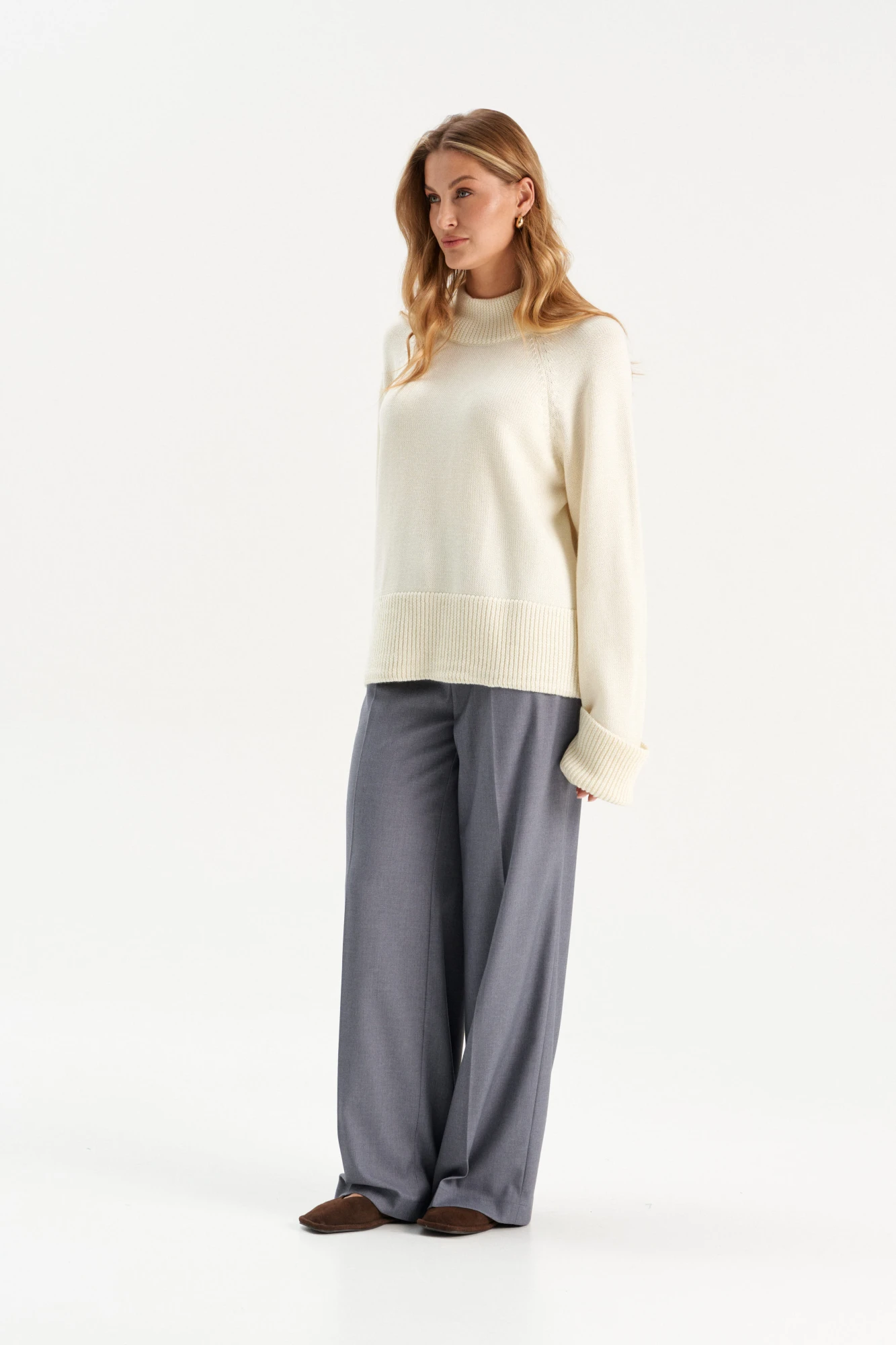 Стильный дизайн: Высокий ворот и ребристые манжеты делают этот джемпер универсальным и подходящим для любого случая.