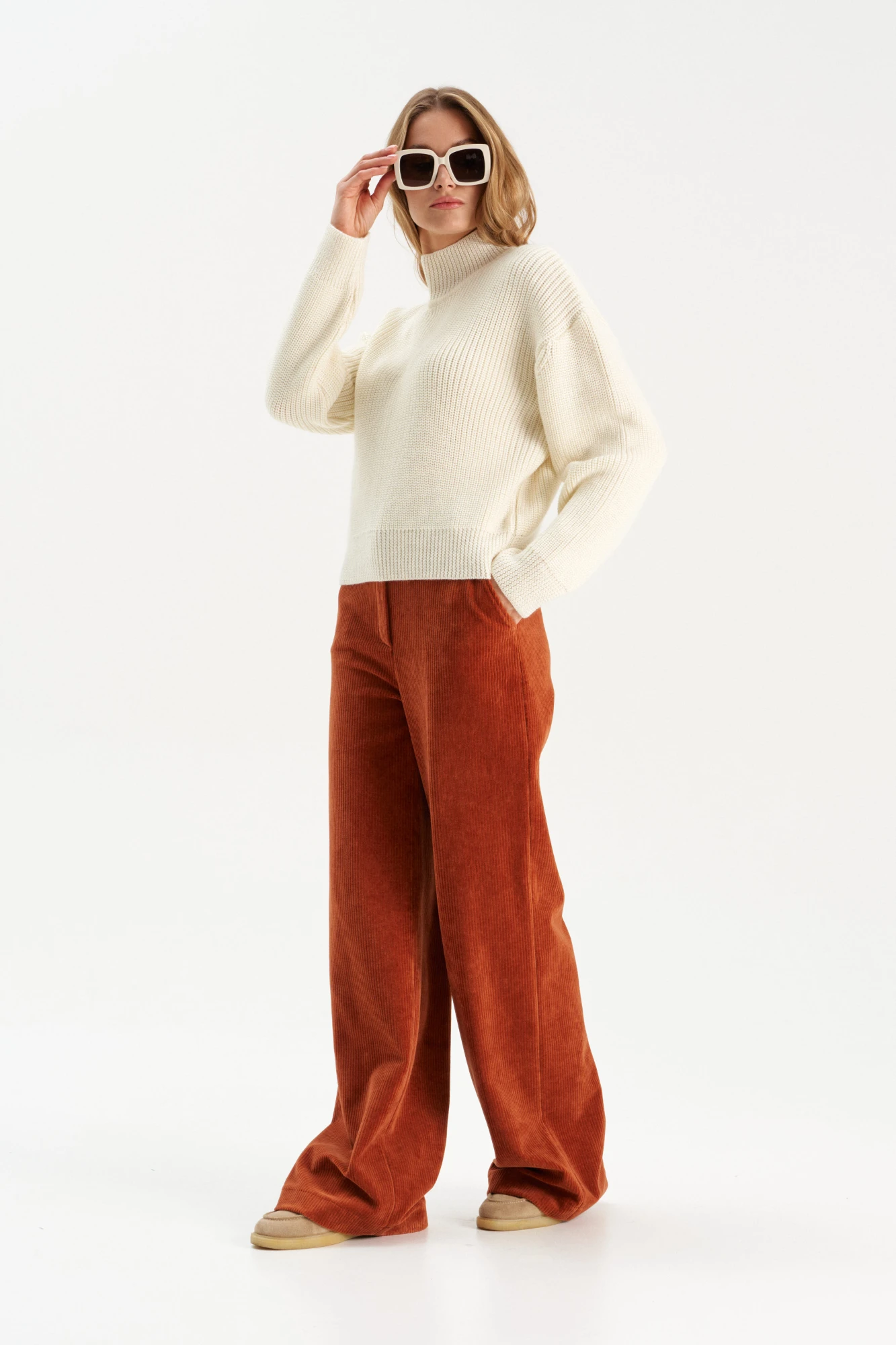 Стильный дизайн: Высокий ворот и простой, но элегантный крой делают этот джемпер универсальным для любого случая.
