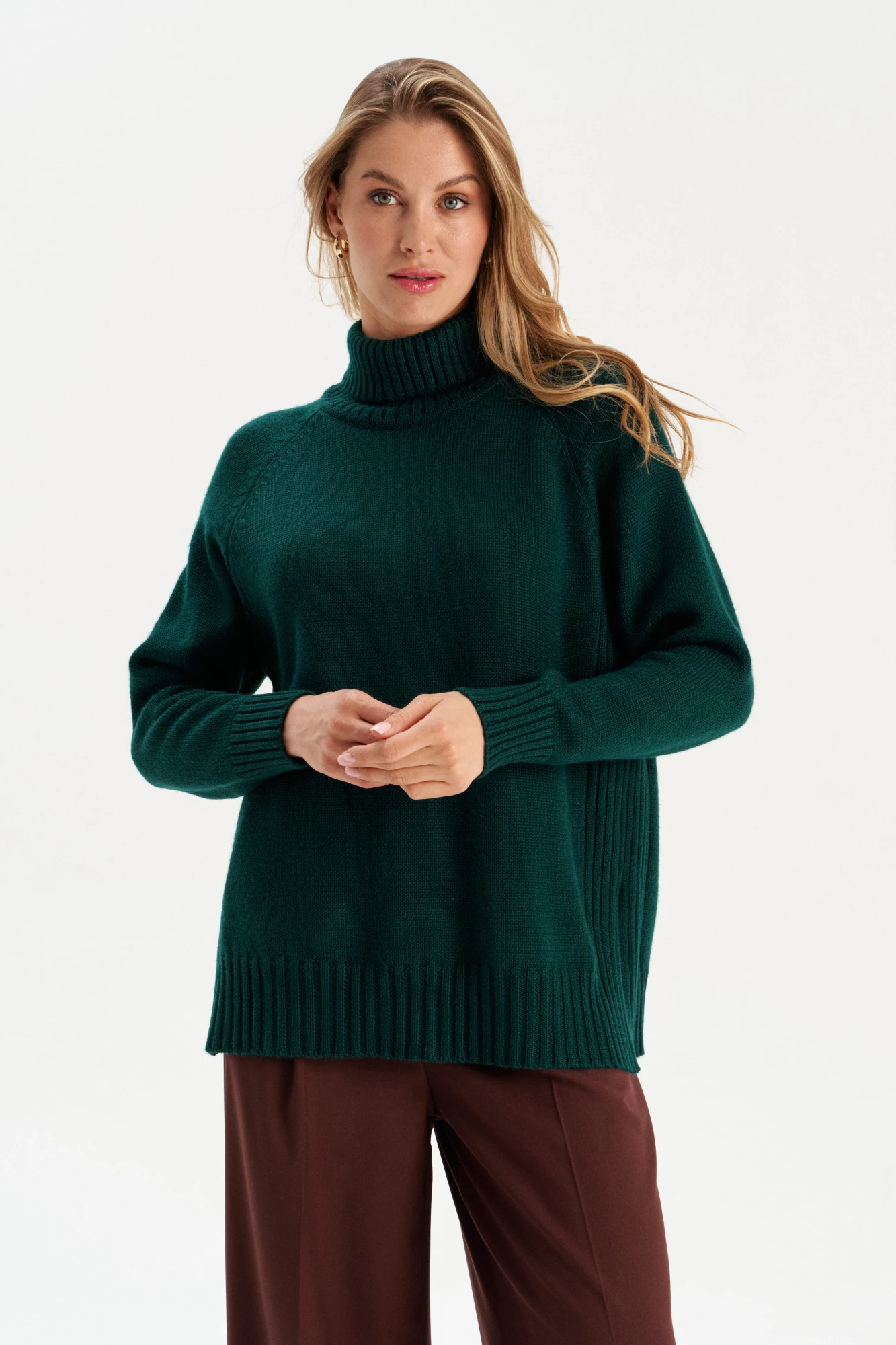 Стильный дизайн: Высокий ворот и удлинённый крой делают этот свитер универсальным для любого случая — от повседневных прогулок до деловых встреч.