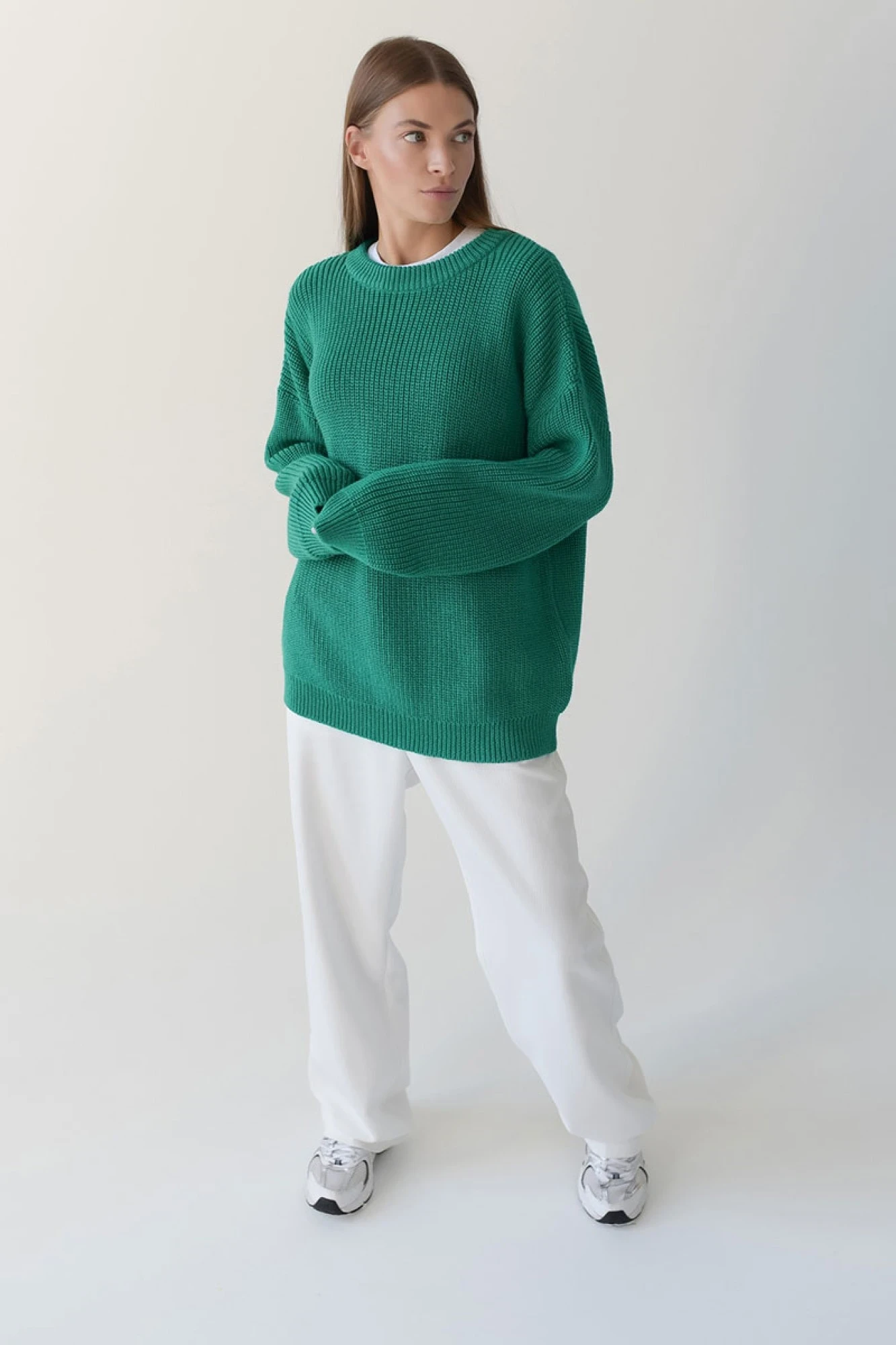 Вязаный женский джемпер. Теплый хлопковый джемпер - модный элемент гардероба для любительниц стильных вещей. Базовый женский свитер изготовлен из пряжи с добавлением хлопка. Мягкий, приятный к телу, не колется. Свитер оверсайз. Отлично смотрится на красавицах любой комплекции. Свитер поможет создать эффектный образ в сочетании с джинсами, лосинами классического и спортивного стиля, юбками средней, короткой и миди длины, а также длинными платьями. Кофта станет отличным подарком на любой праздник для себя или близкого человека. Важная информация! Фото товара сделано при искусственном освещении студии. При естественном освещении цвета могут иметь другие оттенки. Сушите изделие горизонтально, разложив на полу или горизонтальной поверхности. Будьте красивы с Romgil.