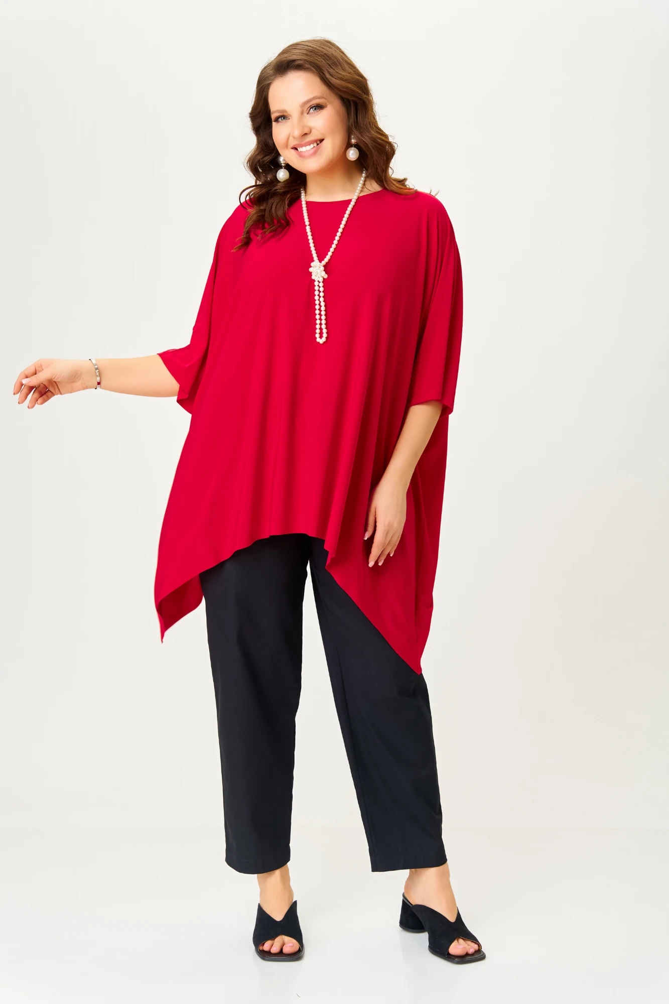 Джемпер OverSize единого размера(подходит для размеров 52-70) идеальный для тех, кто ищет универсальную модель, которая подходит всем девушкам Plus Size. За счёт свободного кроя, туника скроет все недостатки фигуры. Дизайн данной модели предельно простой - свободный крой, удлинённое спущенное плечо, которое скроет полноту рук. Джемпер станет незаменимым в Вашем гардеробе, который всегда будет актуальным. Выполнен из струящегося трикотажа(масло). Джемпер на столько приятный, что Вы не захотите с ним расставаться. Не мнется, не требует глажки и быстро сохнет. Джемпер для тех кто ценит комфорт и стиль.