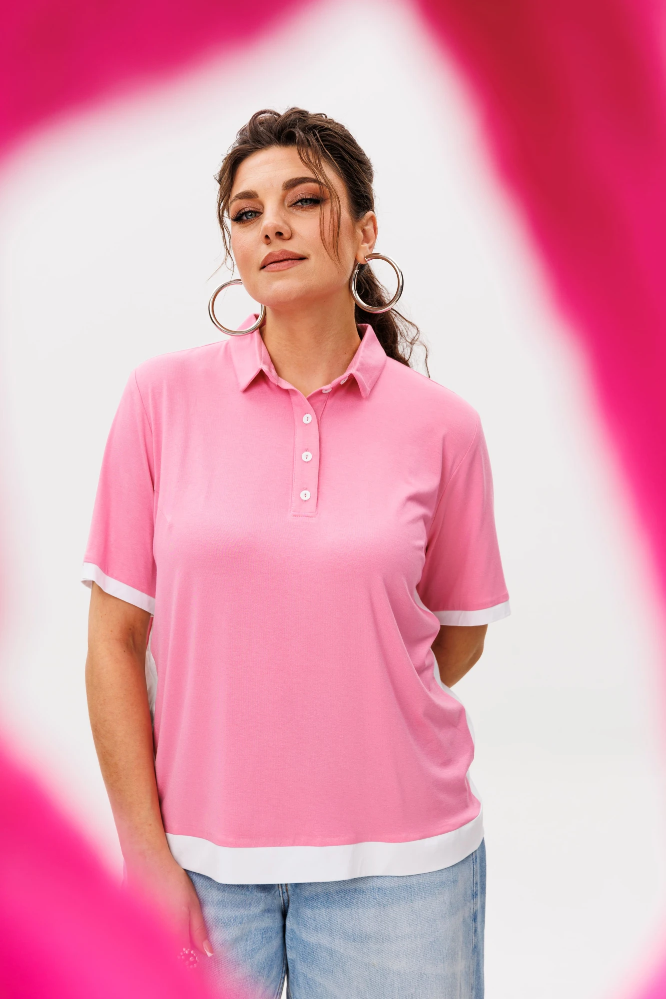 Трикотажное поло прямого силуэта воплощает в себе гармонию классического кроя и современного стиля. Его средний объем и умеренная длина создают сбалансированный силуэт, подчеркивающий естественные линии фигуры, не стесняя движений. Удобство ношения обеспечивается продуманной конструкцией: подкройные бочки мягко облегают, сохраняя свободу, а традиционная застёжка с втачными планками, оформленными петлями и пуговицами, добавляет изделию аккуратный, завершенный вид.