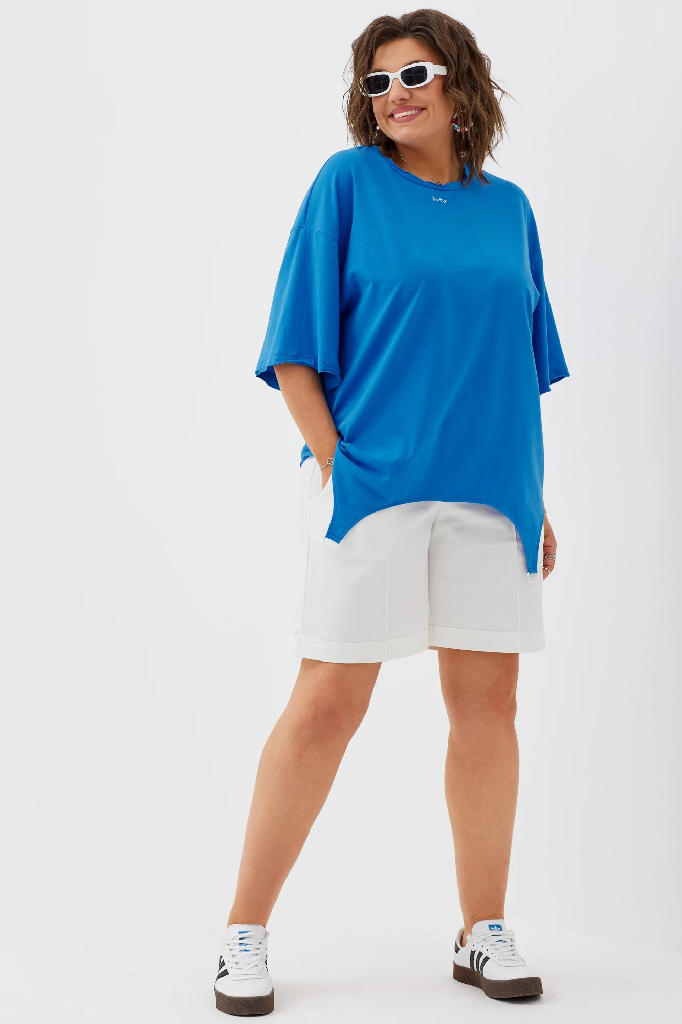 Изысканная и стильная летняя футболка свободного силуэта подарит Вам лёгкость и комфорт в жаркую погоду. Выполнена из хлопкового трикотажа со стрейчем.