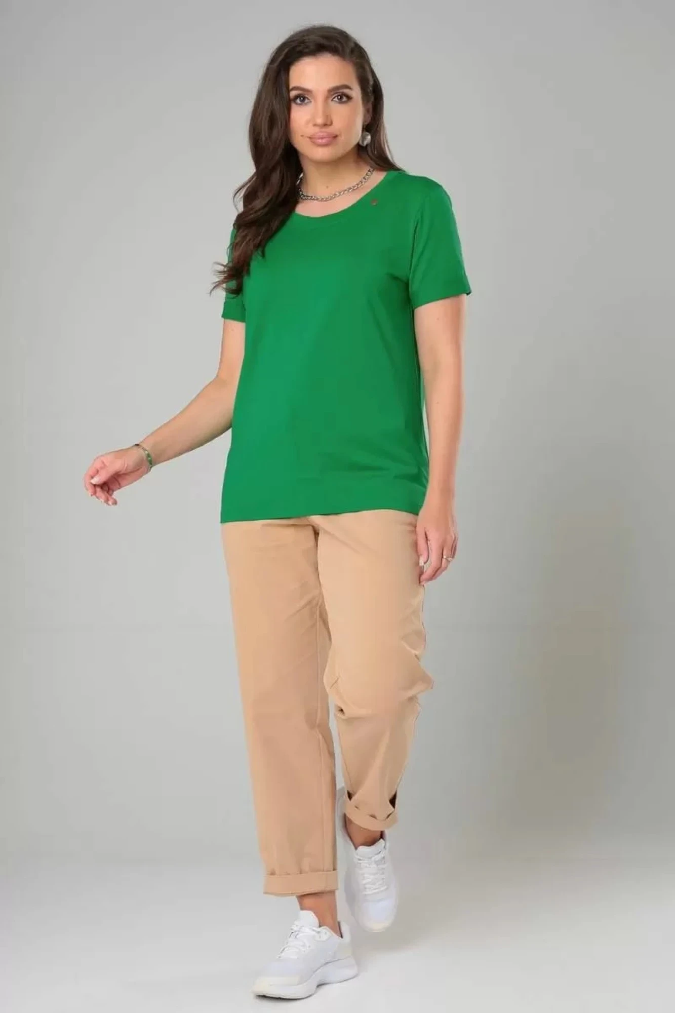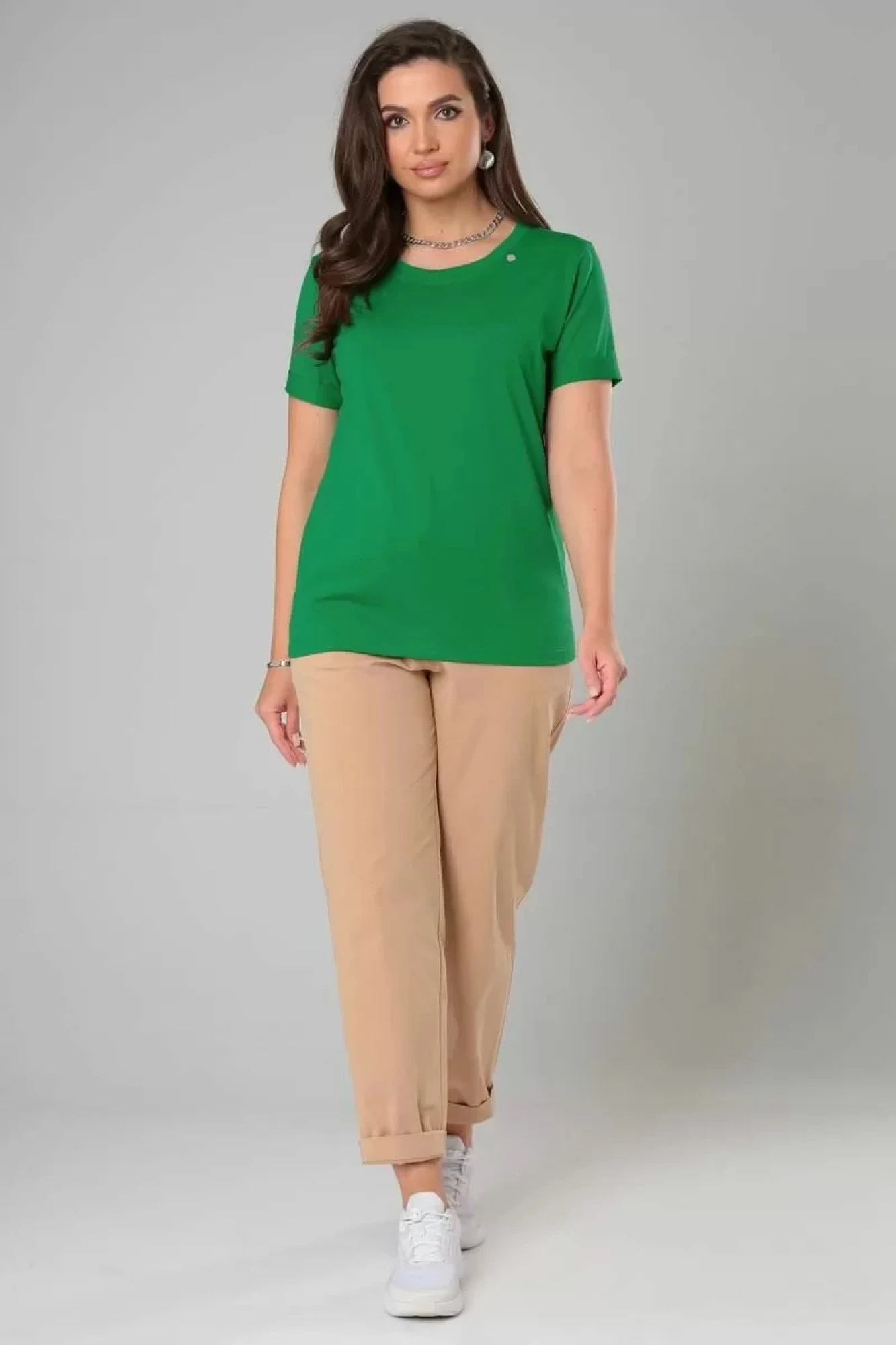 Футболка свободного кроя из мягкого трикотажного полотна, с декоративными элементами. По низу рукава манжета. Яркая футболка – это стильно, эффектно и удобно.